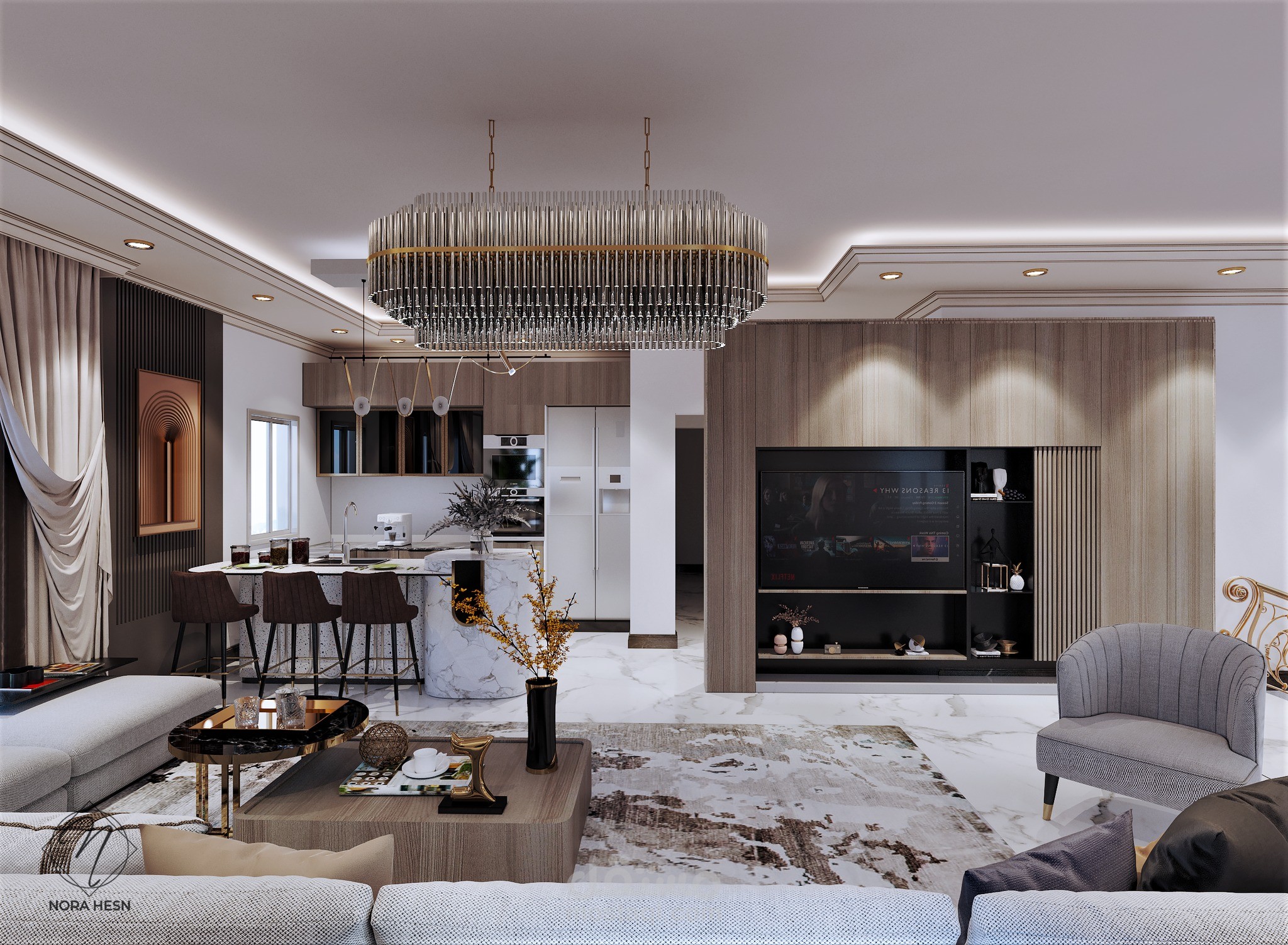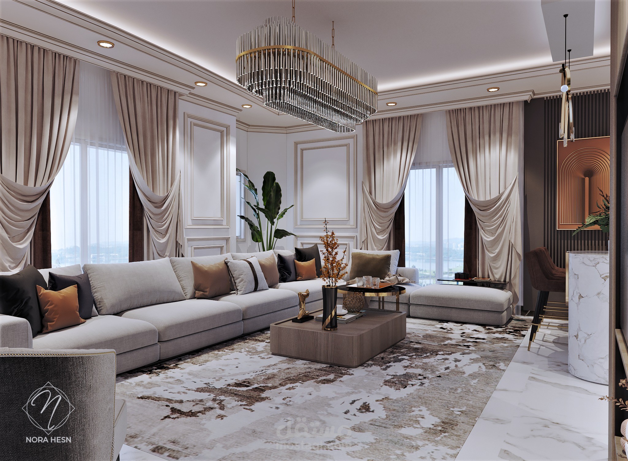 تصميم غرفة مَعيشة معاصرة بالقاهرة