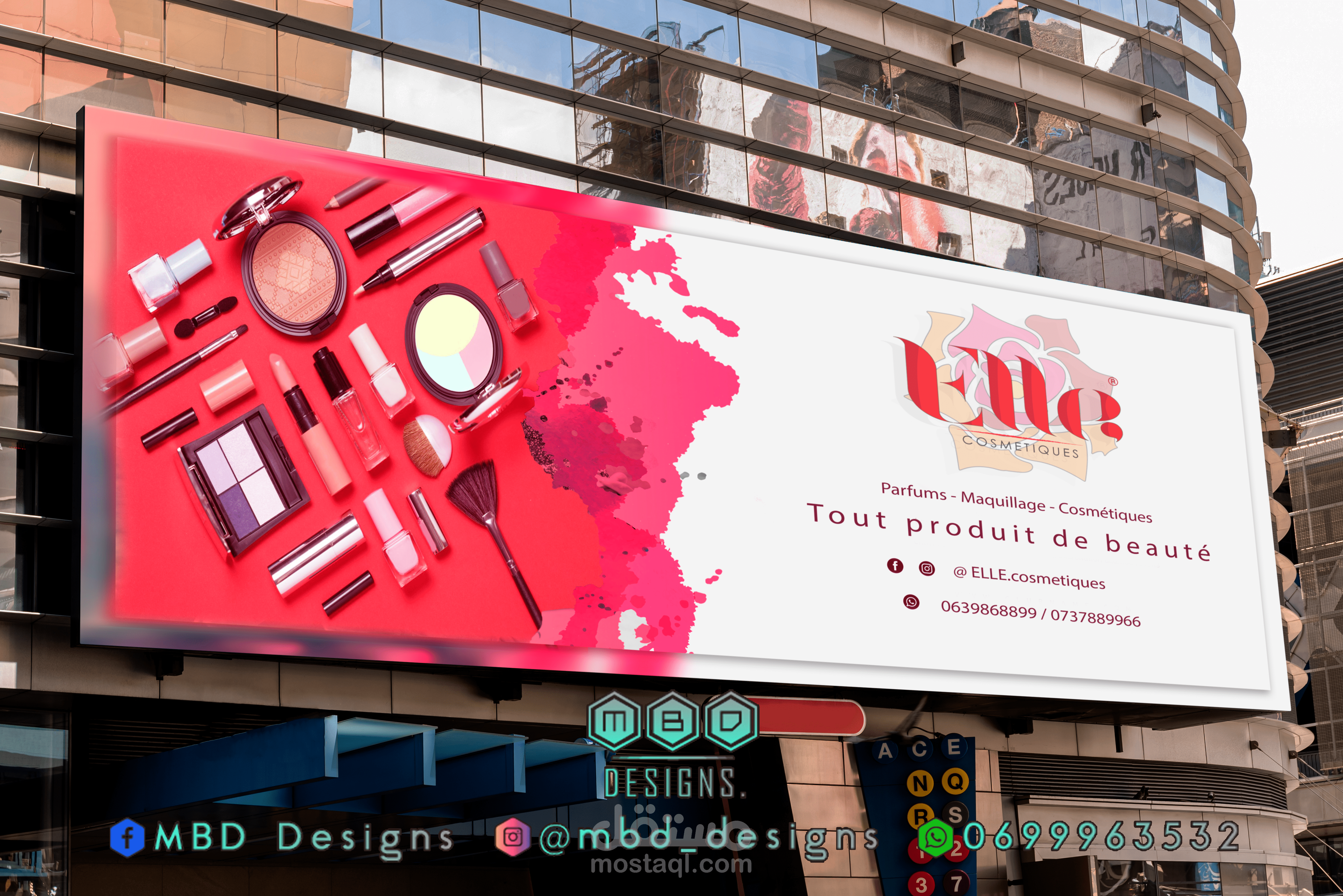 تصميم شعار و لافتة و بطاقة شخصية لمتجر لبيع مواد و ادوات التجميل