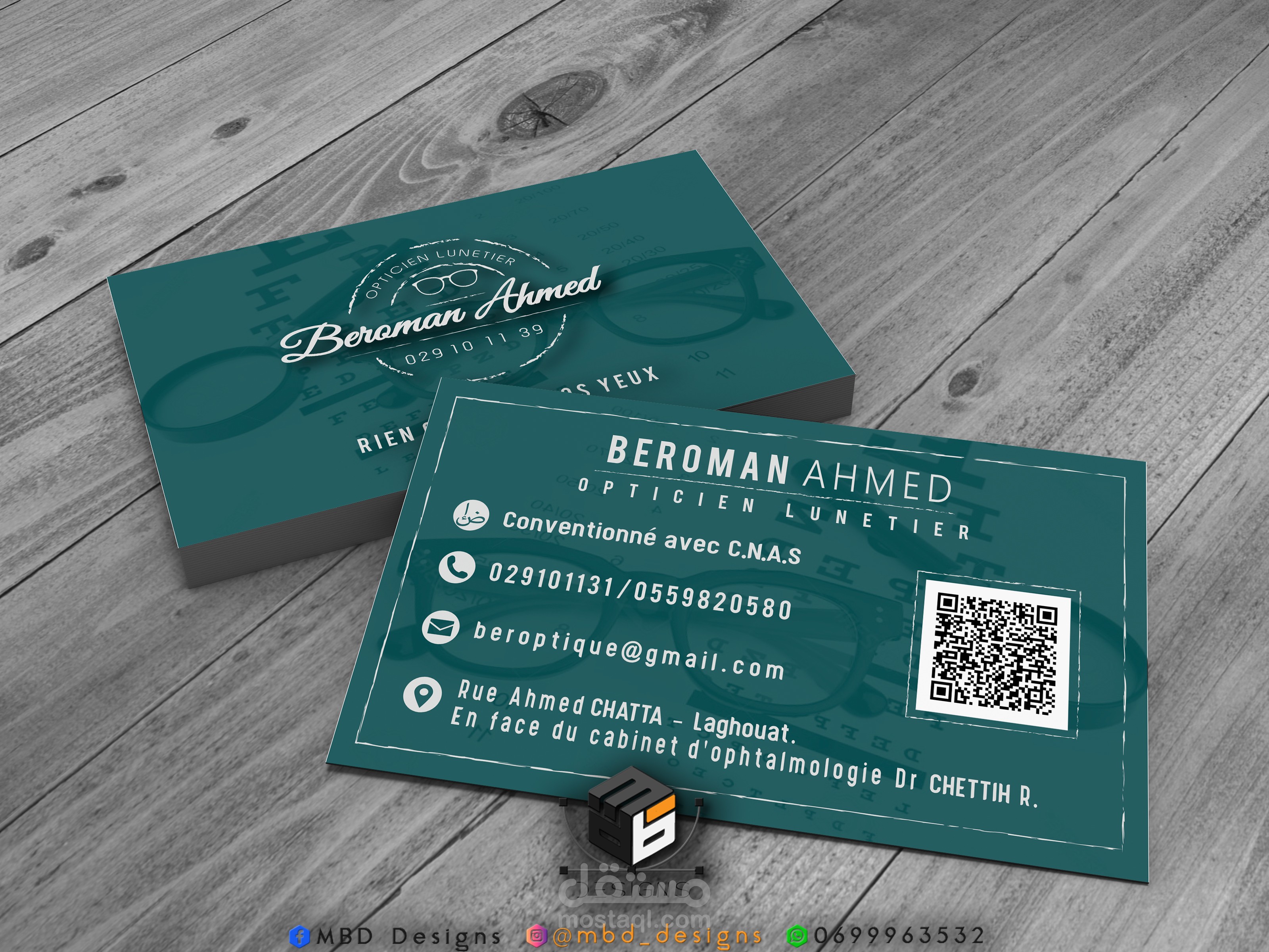 اعادة تصميم شعار و بطاقة شخصية لمل تصليح و صنع النظارات الطبية