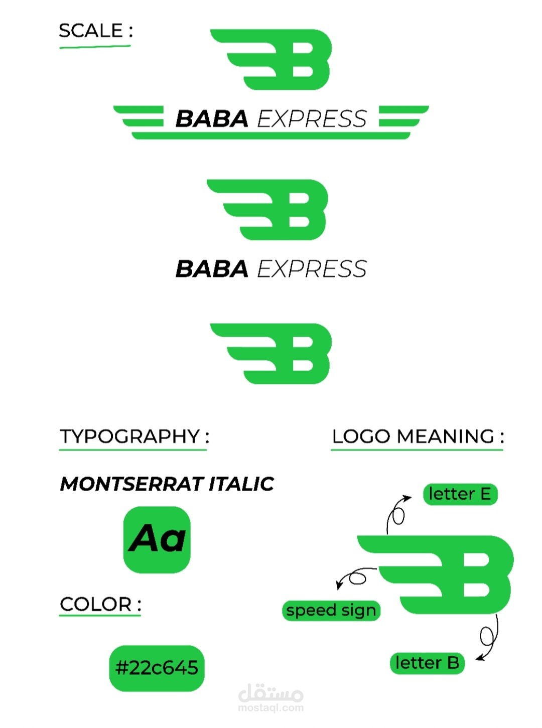 إعتمدت في تصميمي للشعار على الحروف الأولى من إسم الشركة مع رمز السرعة