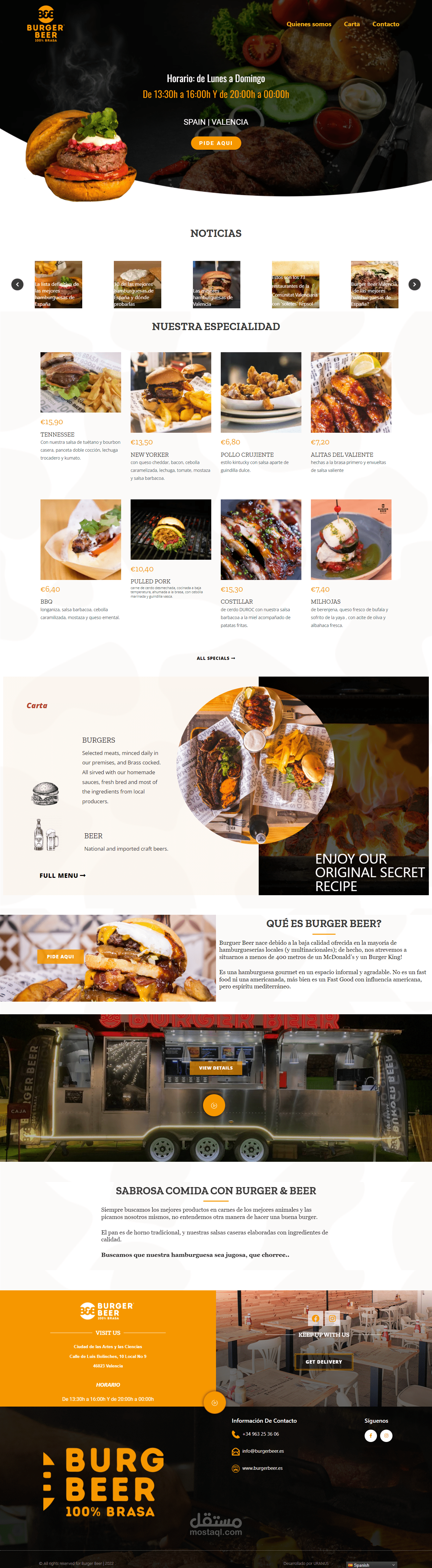 مشروع مطعم لبيع البرغر في اسبانيا /فالانسيا/ تم إنجازه عن خلال الووردبريس عن طريق Elementor & slider revolution الموقع خاص بتقديم قائمة الطعام للزائرين بالإضافة لإمكانية الدفع الالكتروني عن طريق الموقع.