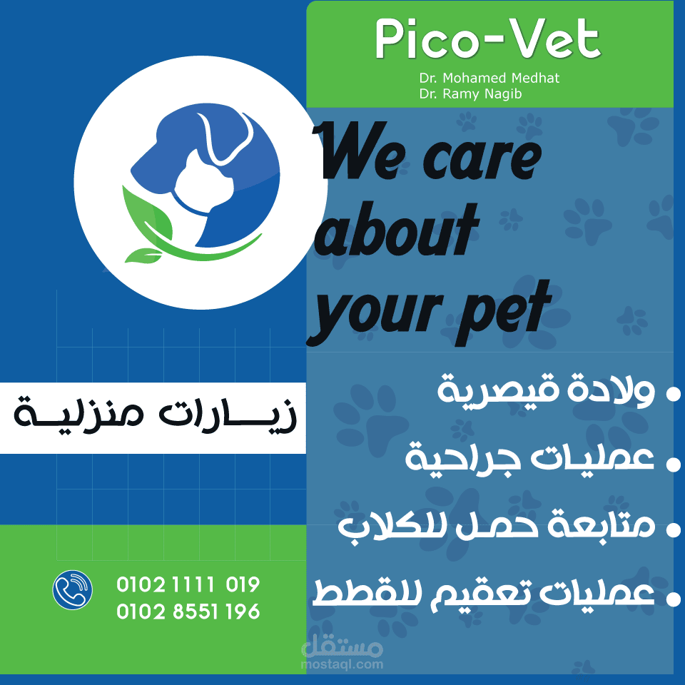 احد العملاء قام بطلب تصميمات لصفحته علي الفيس بوك و التي تعمل في الاستشارات البيطرية