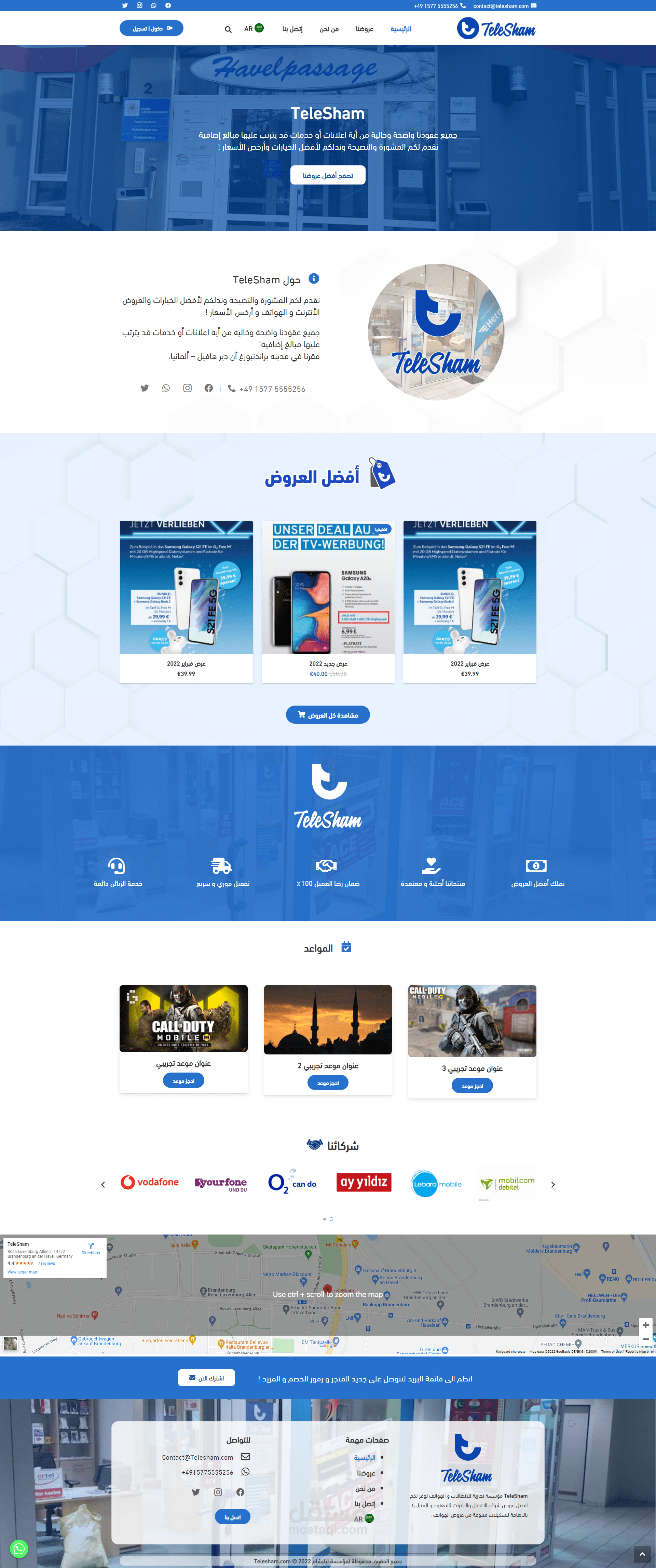 الموقع يحتوي 3 لغات (عربية - انكليزية - المانية) بالاضافة الى باقات الاتصالات و عروض الهواتف النقالة مع نظام العضوية و المواعيد و نموذج الاتصال