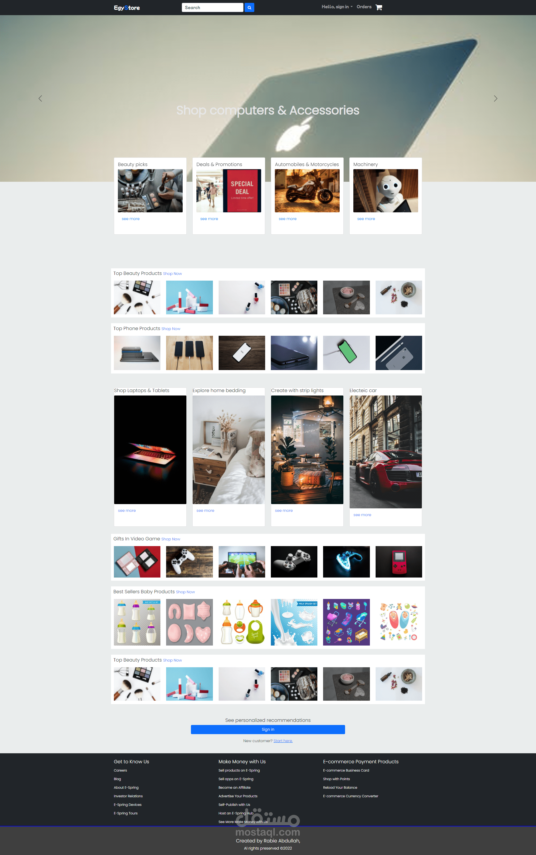 قمت بتصميم موقع E-commerce كتدريب وقد قمت باستخدام التقنيات التالية في البرمجة HTML & CSS & Bootstrap & Angular JS