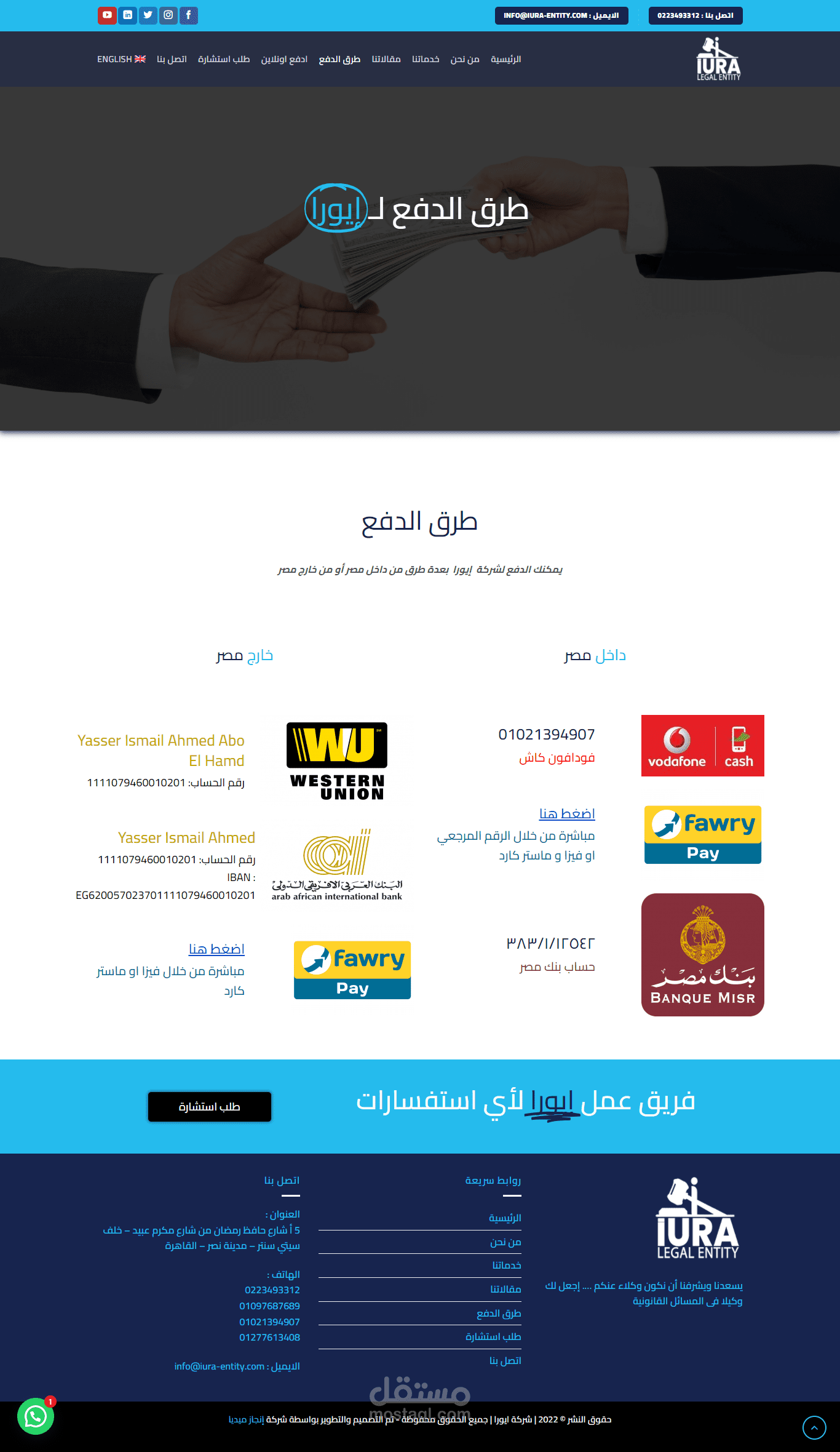 Multi Language Website + Payment Method With FawryPay For iura-entity - موقع متعدد اللغات لشركة المحاماه ايورا