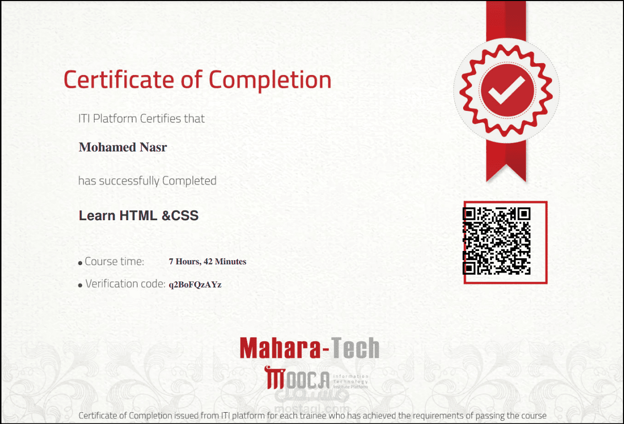 يمكنك التأكد من الشهادة عن طريق قراءة رمز QR code الموجود في الملف المرفق.