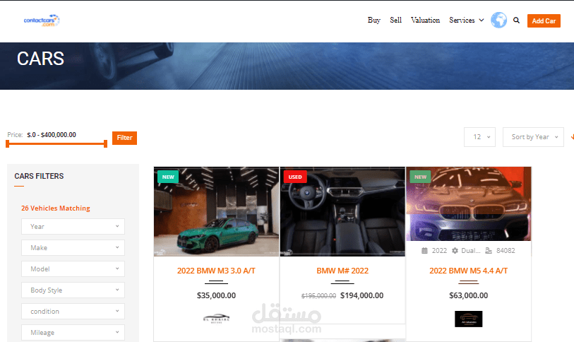 تقليد لموقع Contact Car الخاص بالسيارات، باستخدام تقنيات الWordPress.