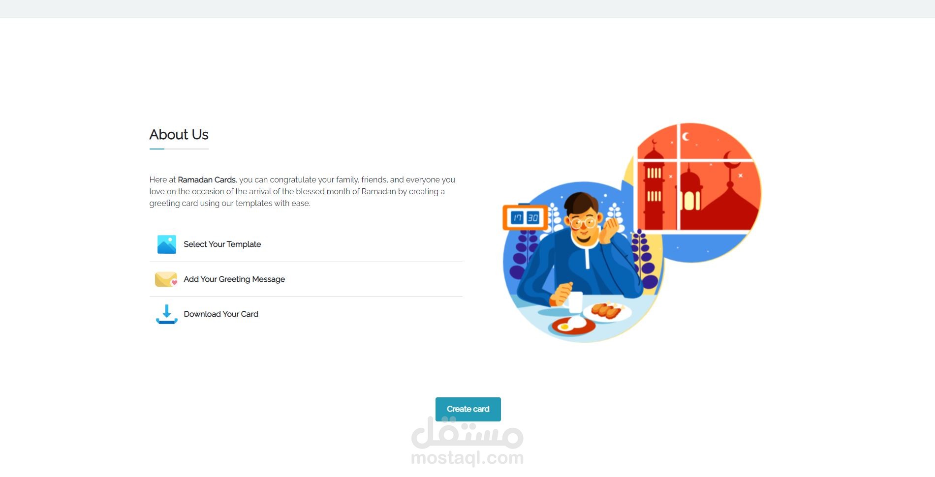 عن طريق هذا الابلكيشن تقدر تنشىئ بطاقة معايدة بمناسبة حلول شهر رمضان المبارك وتشاركها مع الجميع.