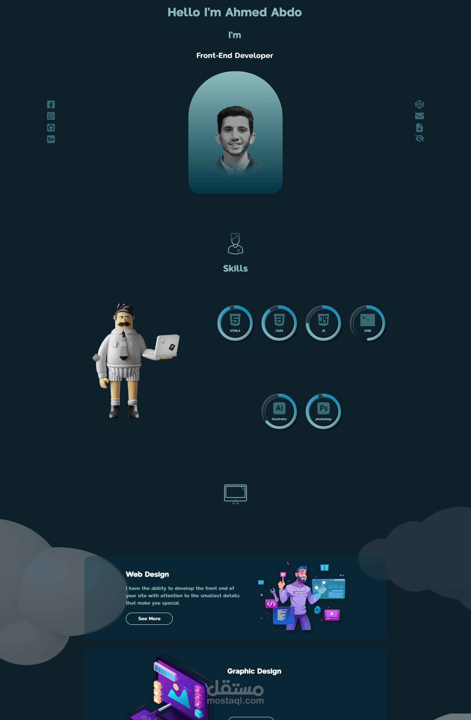 هذا العمل هو معرض أعمالى الشخصي والذي تحديت نفسي ببنائه دون الاعتماد على اي مكتبات خارجه مستخدما فيه المهارات الاساسية و الاهتمام بالتفاصيل الصغيرة ليظهر فى النهاية بهذا الشكل