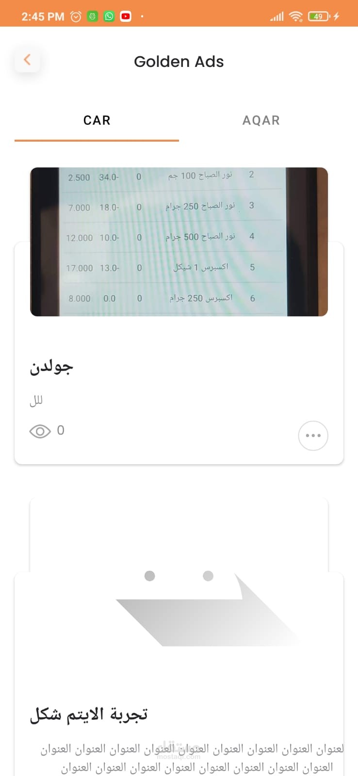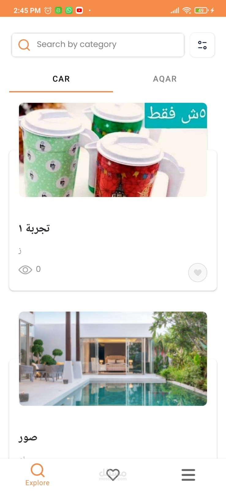 Car W Aqar هوا تطبيق يعمل على عرض السيارات و العقارات ويمكن لاي شخص داخل التطبيق عرض العقارات او السيارات الخاصة به ونشرها وبيعها بسهولة ويمكن إضافة الصور وموقع الخاص بلعقار واذا تم اعجب شخص بمشورك ف يمكنه مكالمتك او مراسلتك على البريد الخاص بك