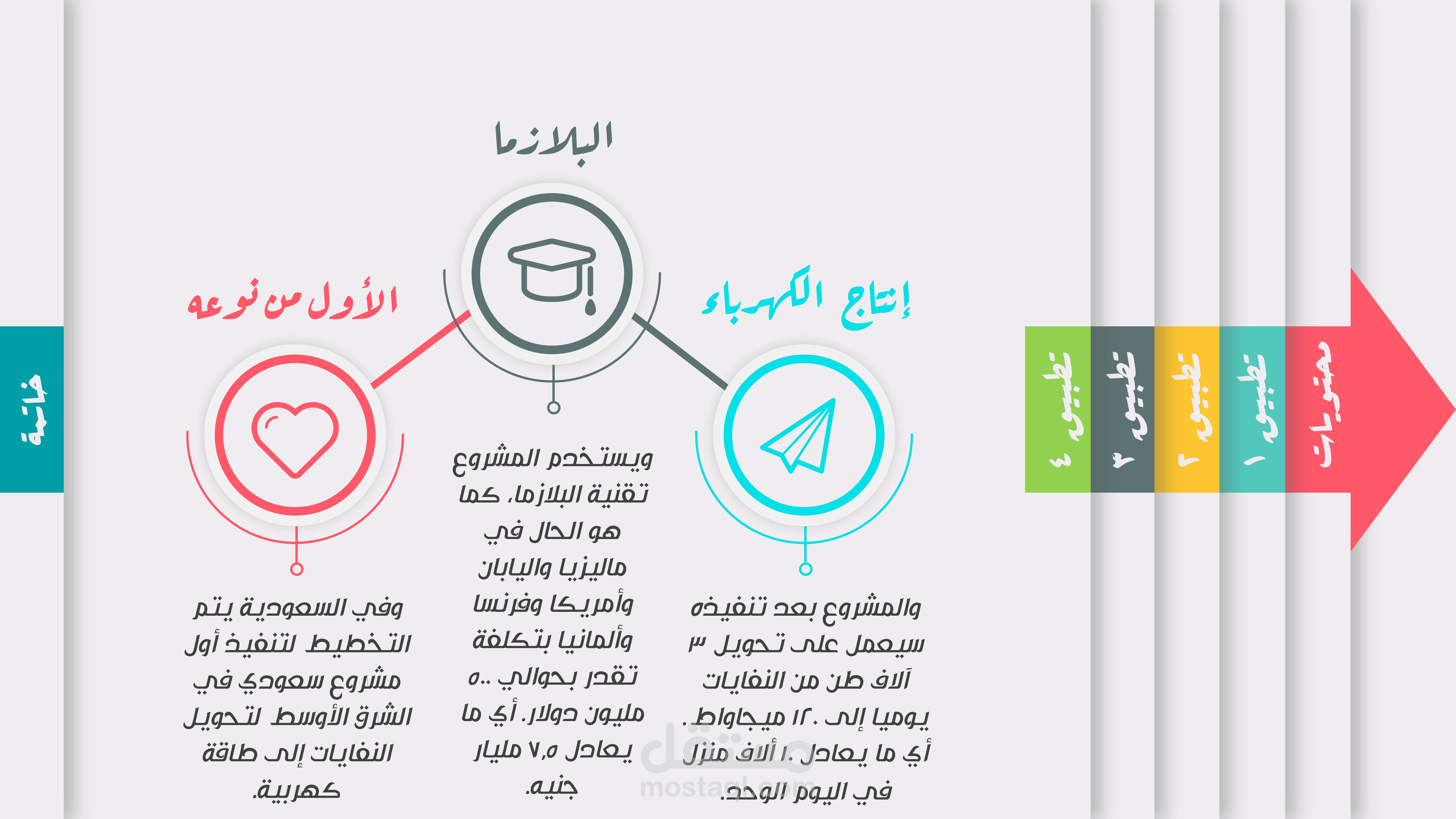 قمت بتخصيص عرض بوربوينت مقدم من PowerPoint School ليتناسب مع المحتوى العربي المطلوب وهو محاضرة قصيرة عن البلازما، والقيام بتصدير العرض التقديمي كملف فيديو مع إضافة الشرح الصوتي المتزامن.