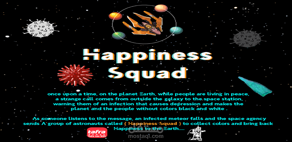 As someone listens to the message, an infected meteor falls and the space agency sends A group of astronauts called (Happiness Squad ) to collect colors and bring back happiness to the earth....