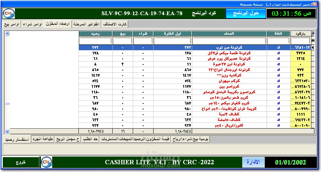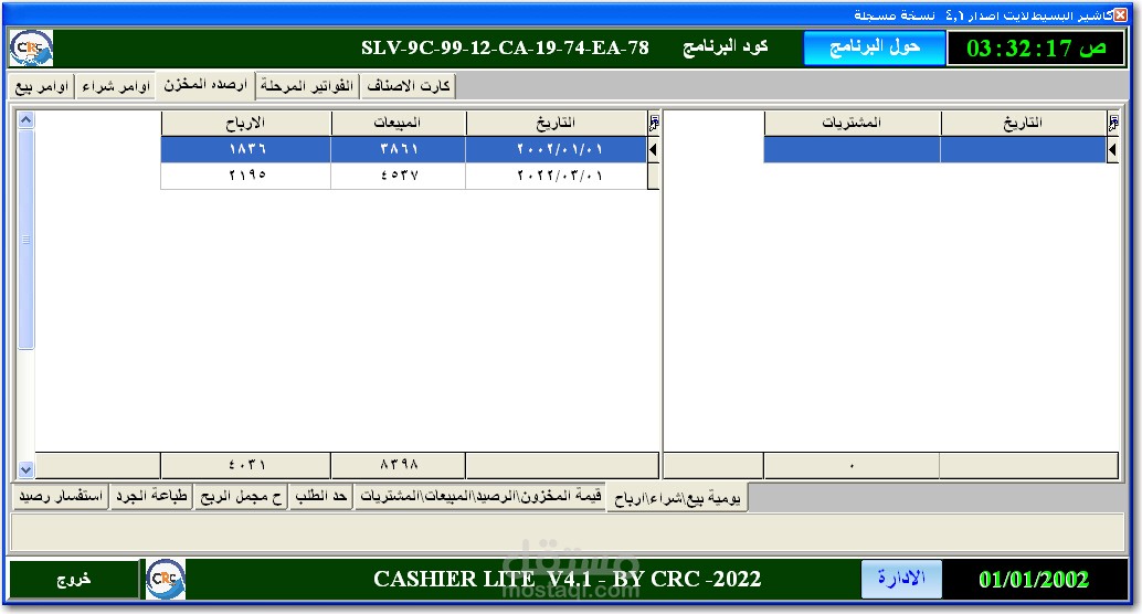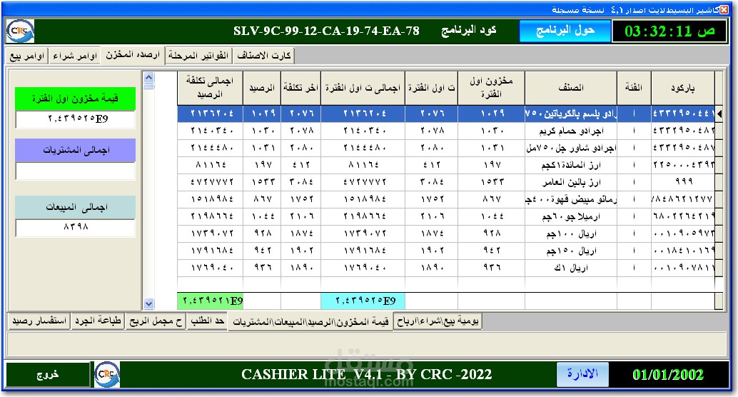 يوميه مبيعات يوميه مشتريات قيمه مخزون اخر الفتره وفقا لآخر تكلفه شراء استفسارات وتقارير متنوعه.