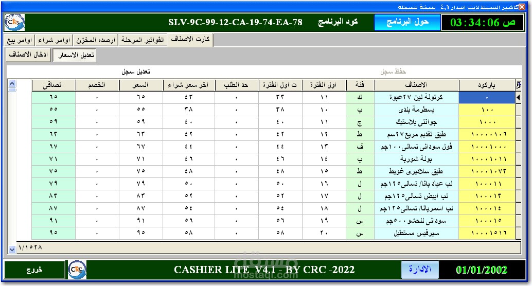 ١-برنامج طباعه الباركود لاصناف التي ليست لها تكويد دولي