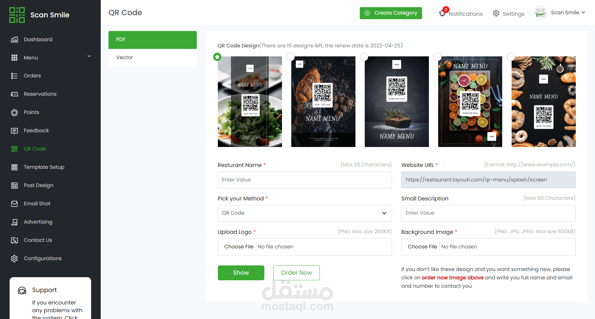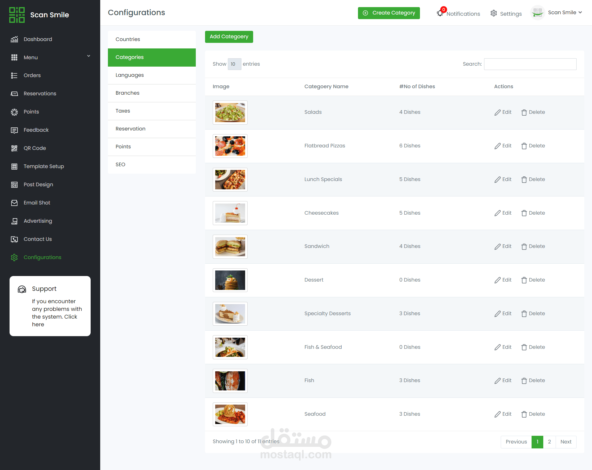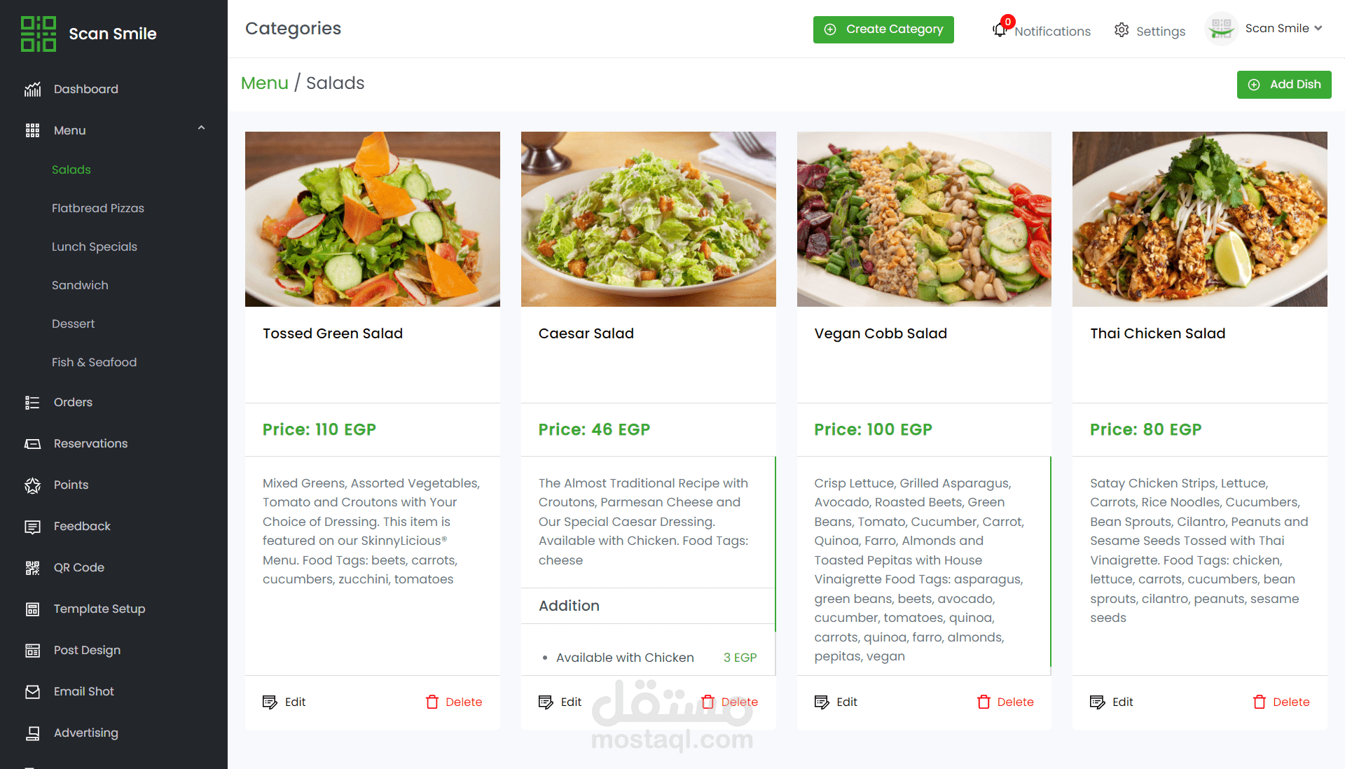 2- The way to view the categories that have been added to the control panel and the restaurant, and to display the dishes that have been added and the way to modify them