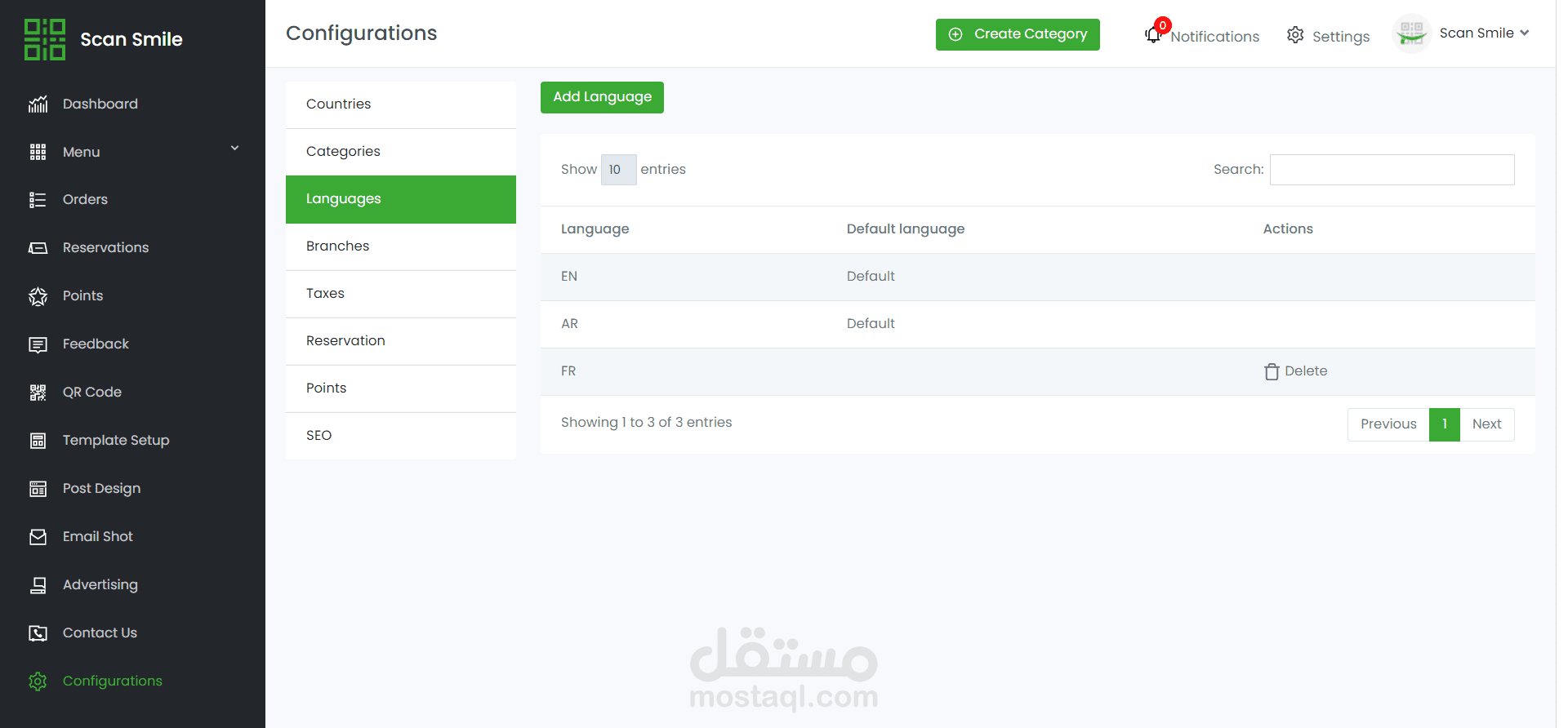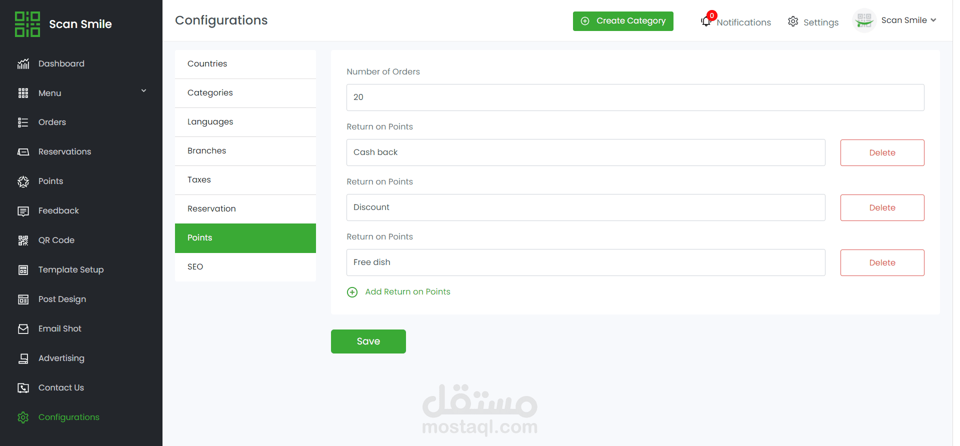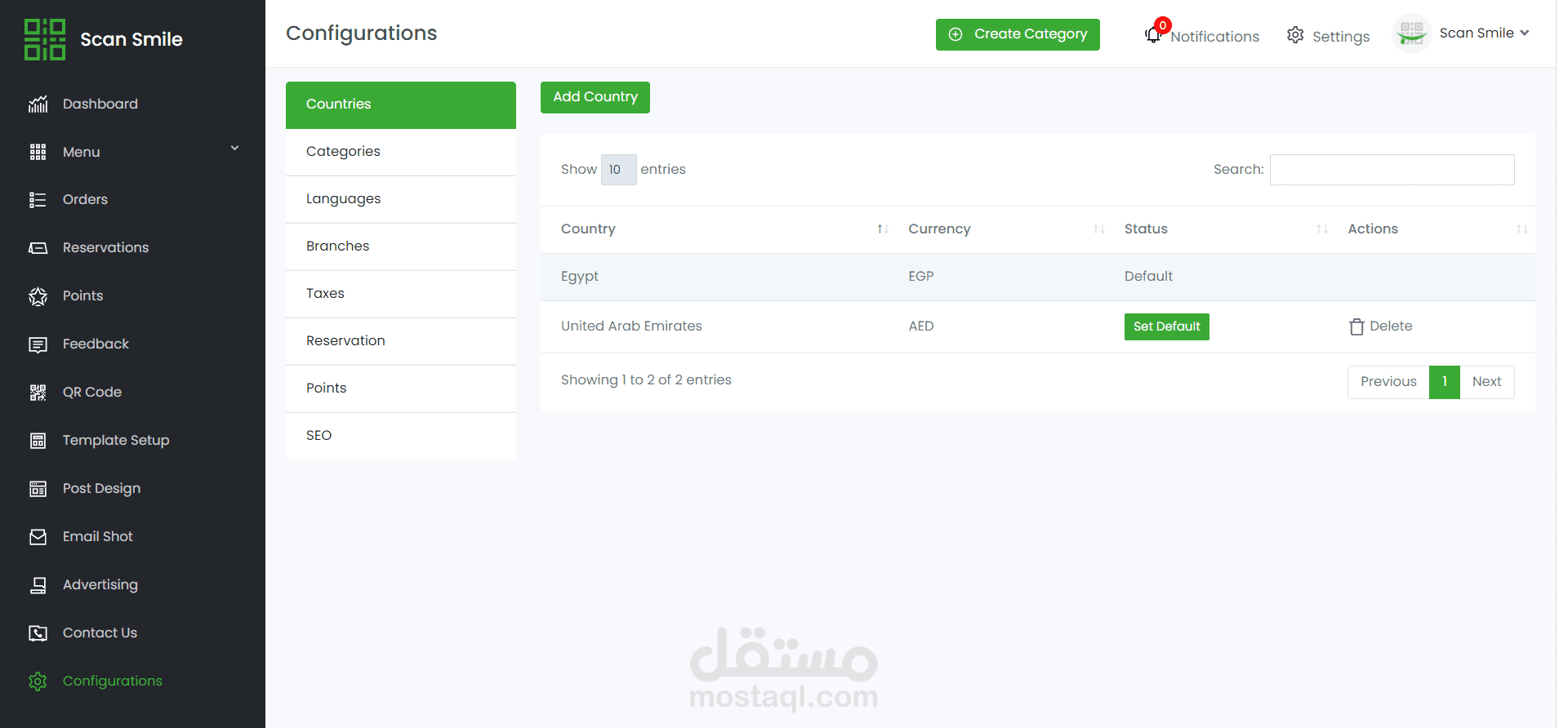 2- The way to view the categories that have been added to the control panel and the restaurant, and to display the dishes that have been added and the way to modify them