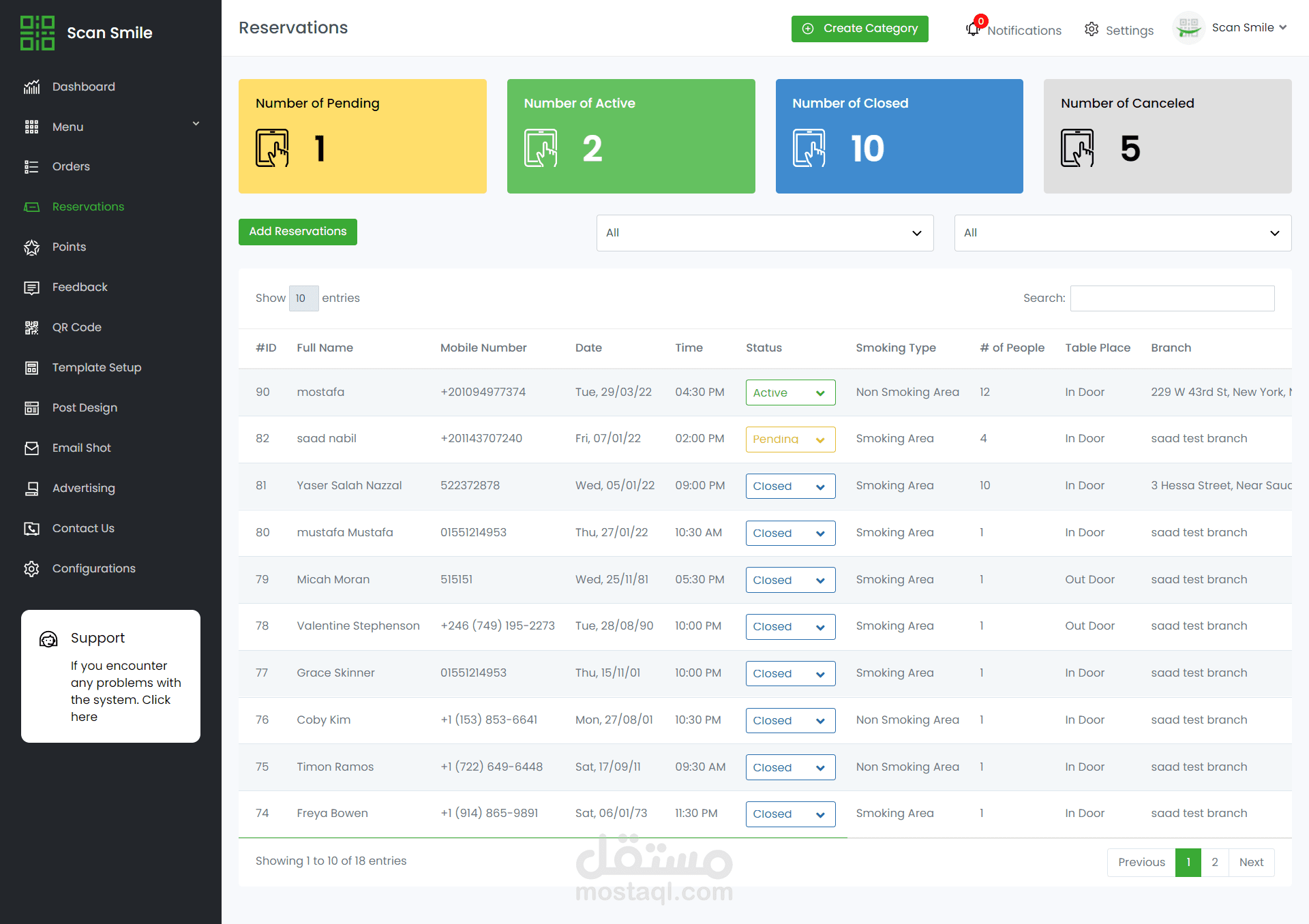 4- Reservations that are booked through the restaurant and the status of those reservations can also be added manually