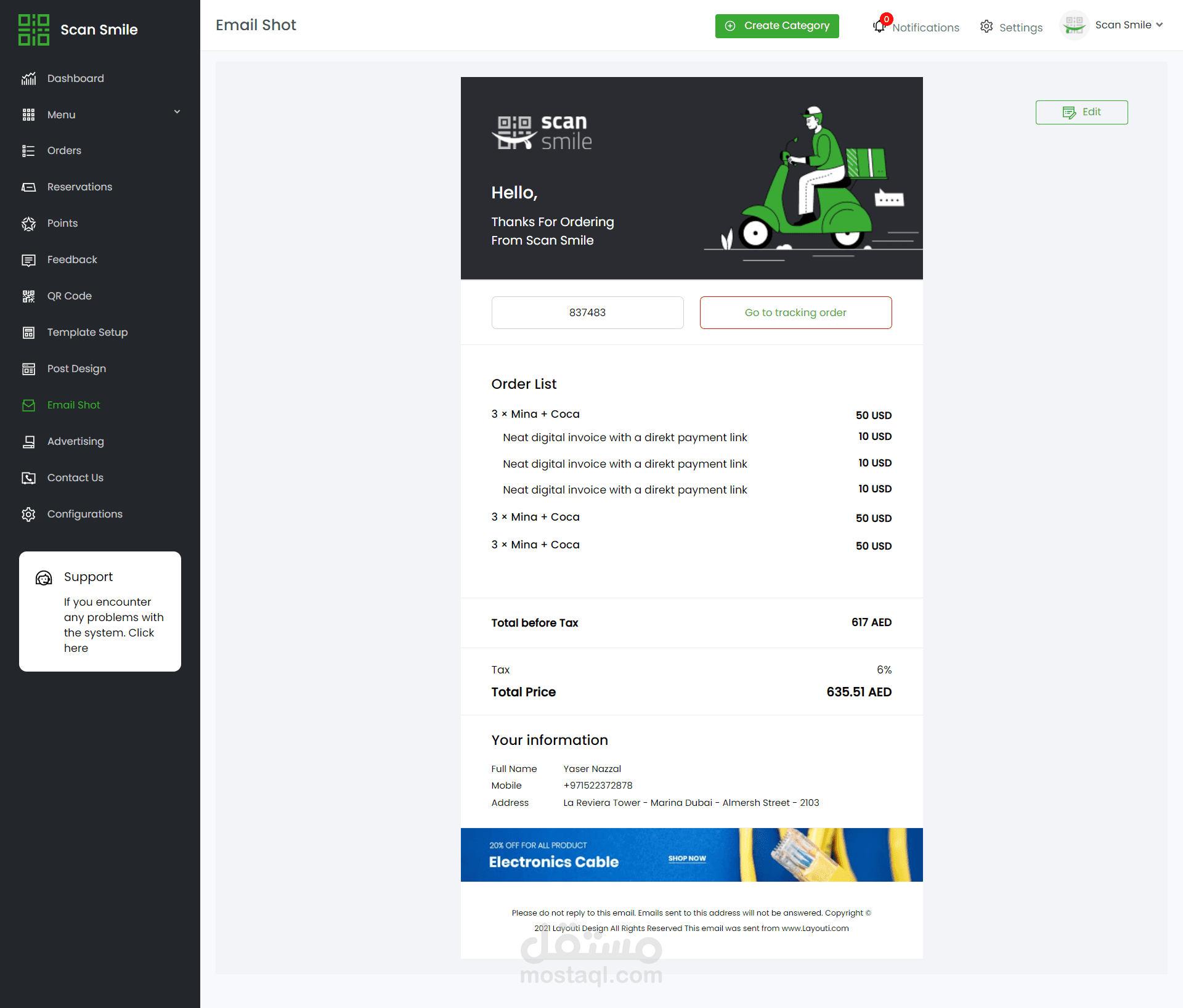 12- Advertisements: There is a feature to place advertisements in the mobile in order to increase the profit of the restaurant