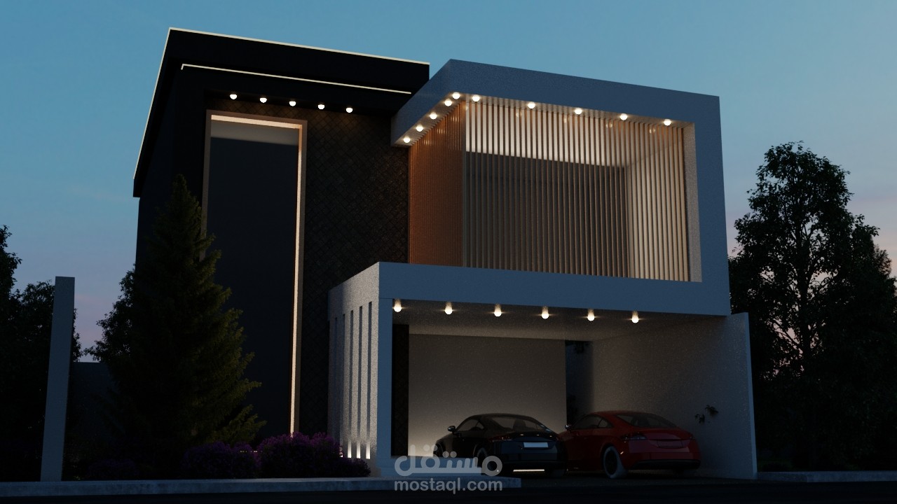 تصميم خارجي ثلاثي الابعاد ل فيلة حديثة