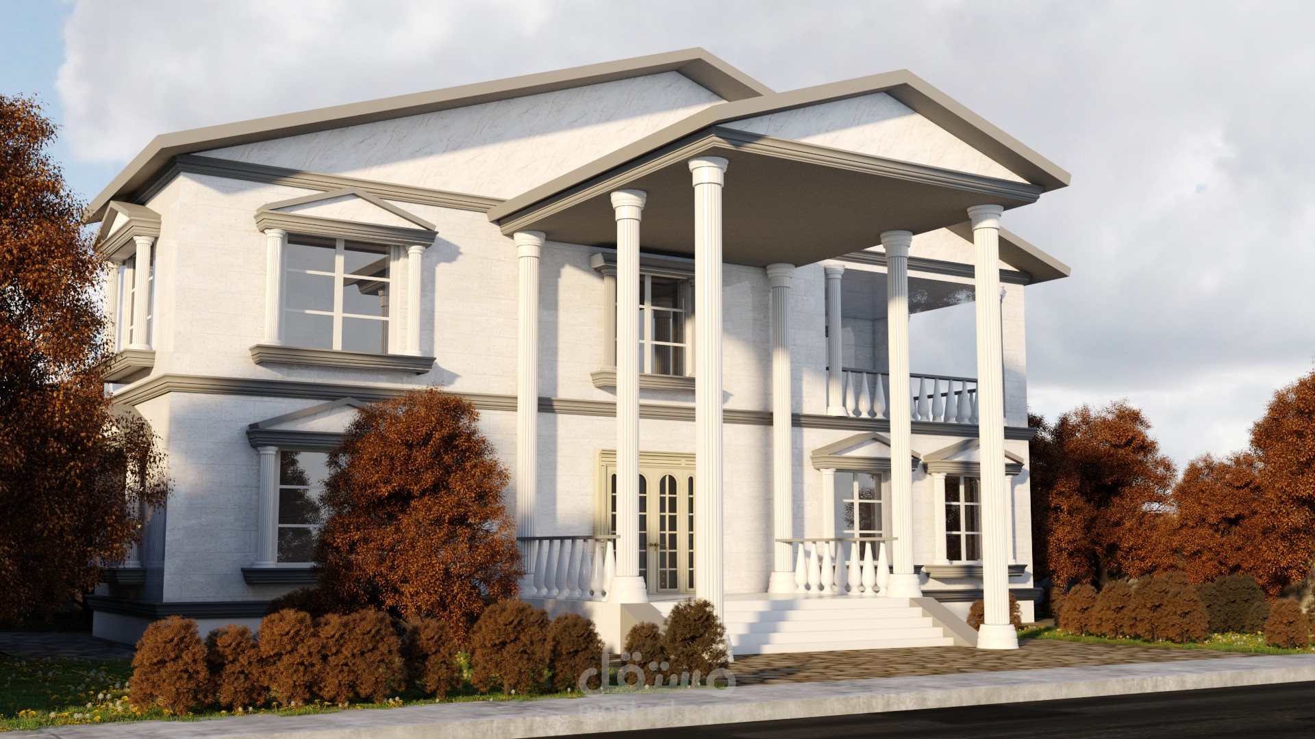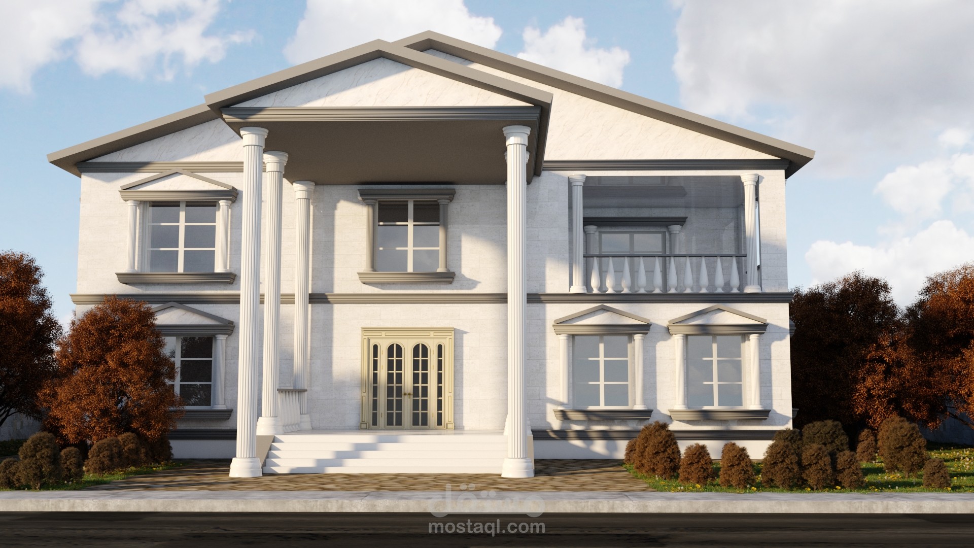 تصميم خارجي لفيلا على الطراز الكلاسيكي