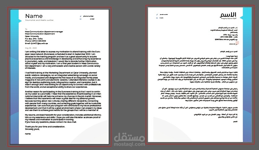 كتابة رسالة الدافع باللغتين العربية والانكليزية