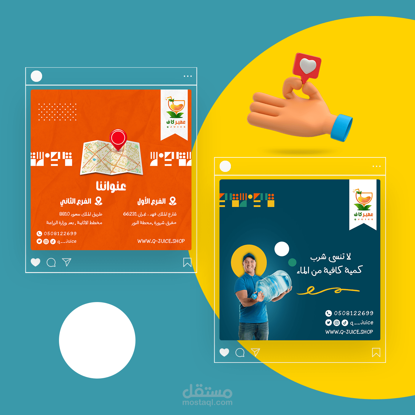 تصاميم سوشيال ميديا حديثة تراعي مبادئ و أساسيات التصميم معتمدة على ألوان الهوية البصرية للمشروع مع الأفكار الإبداعية مع التعديل على صورة المنتجات .