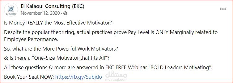 بوست يثير التساؤل والفضول عن المال ودوره في تحفيز الموظفين بهدف التسجيل لحضور ندوة تجاوب على هذا السؤال وأكثر