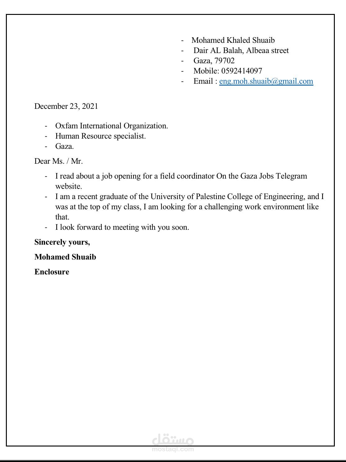 Cover letter.