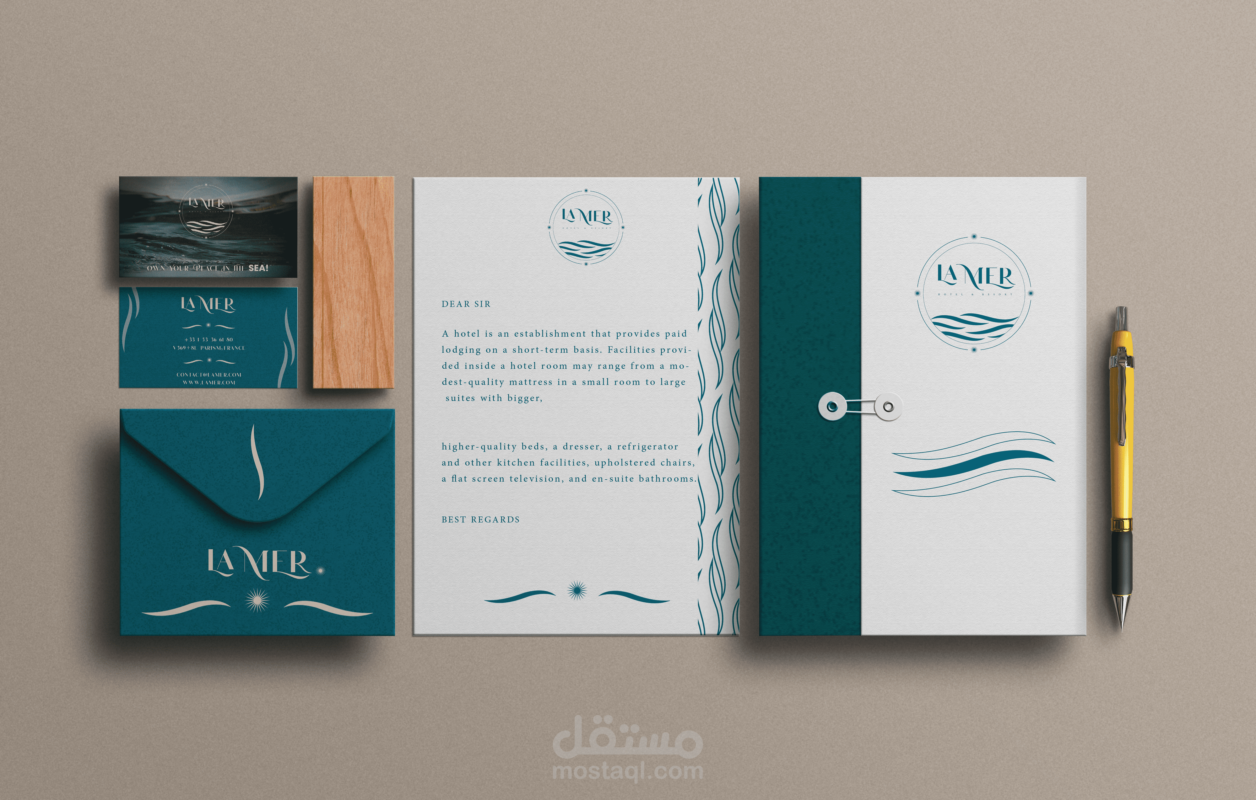 تم بناء اللوغو بشكل يتوافق مع جمالية المكان واطلالته الساحرة وفخامته