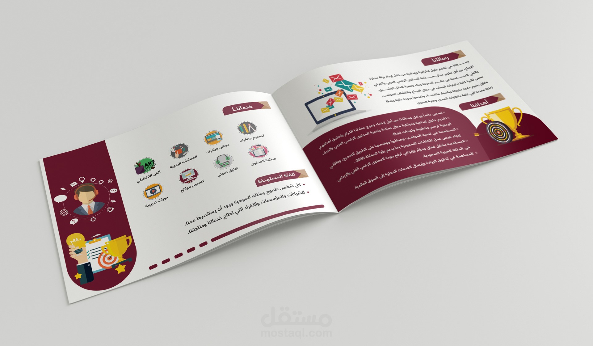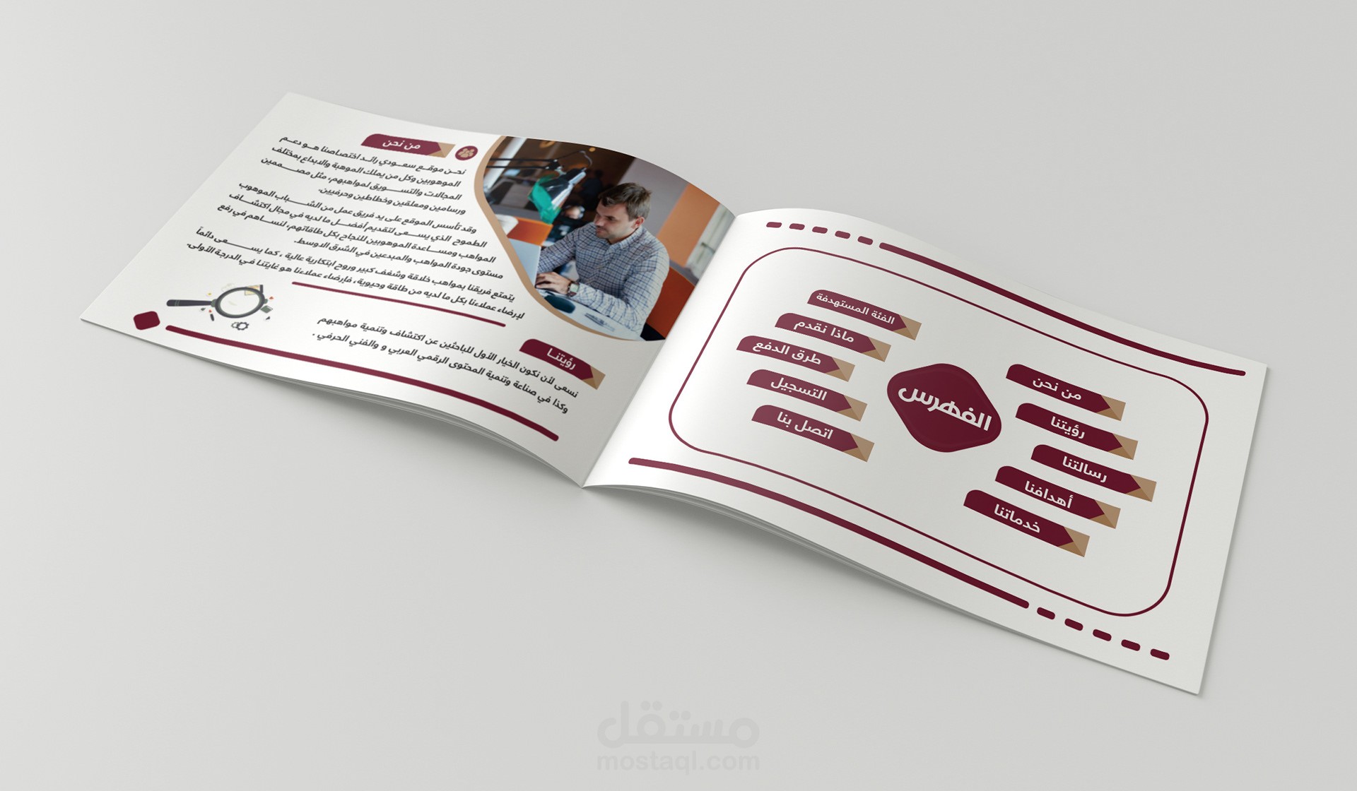 يشمل على نبذة عن المؤسسة وأهدافها وخدماتها وفريق العمل