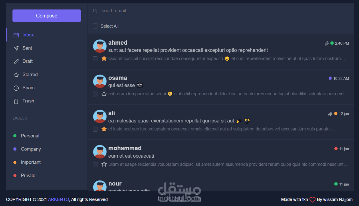تصميم static لداشبورد و email باستخدام احدث التقنيات vue 3, vite and pinia