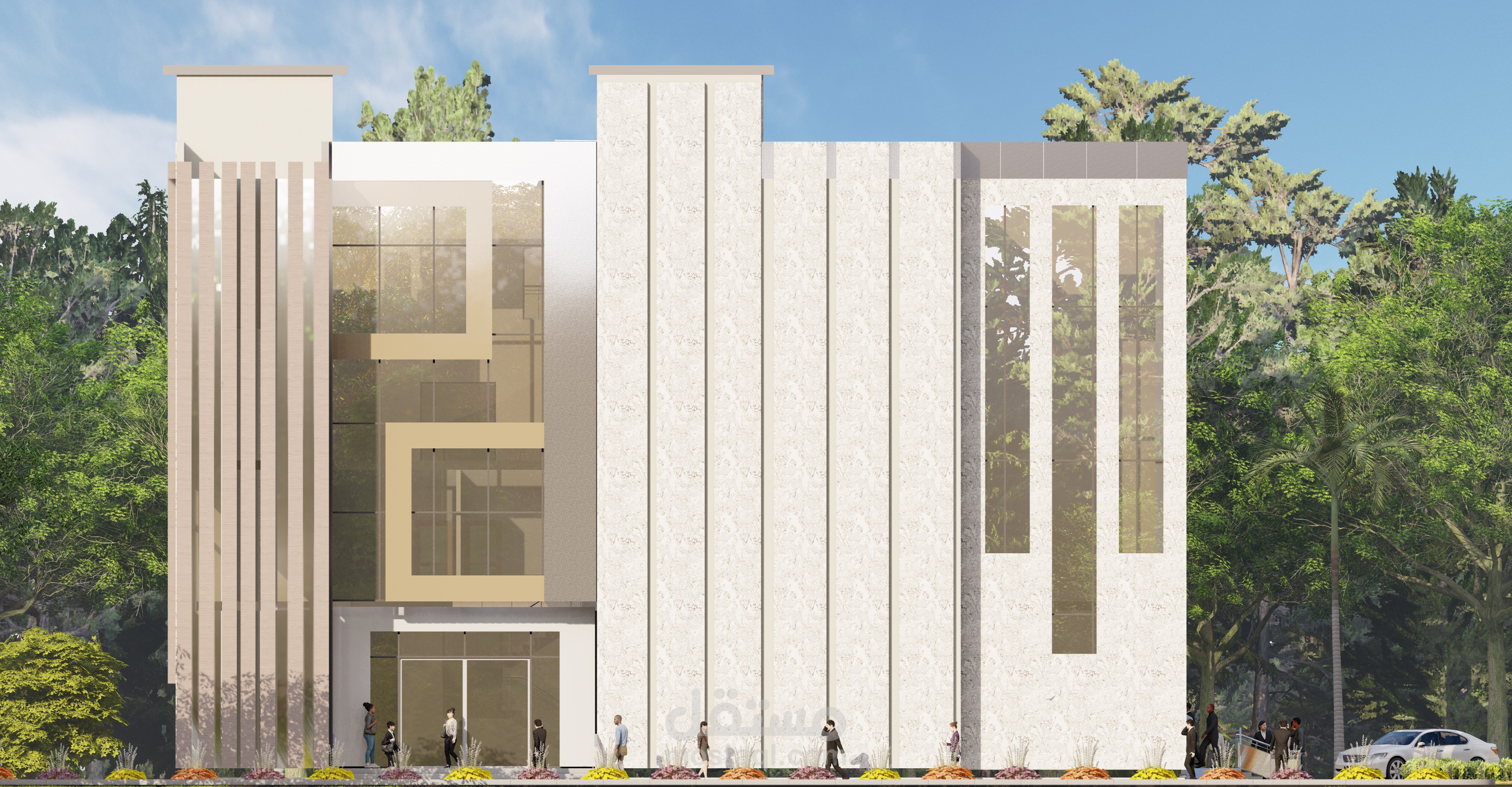 2- أساهم من خلال عمل رسومات عمل مع إظهار المواد الخاصة به من خلال عرضها على الفوتوشوب ، وأخيراً عرض على Lumion إظهار المحيط الحي من خلال البناء كمبنى حقيقي مع لقطات عالية الجودة.