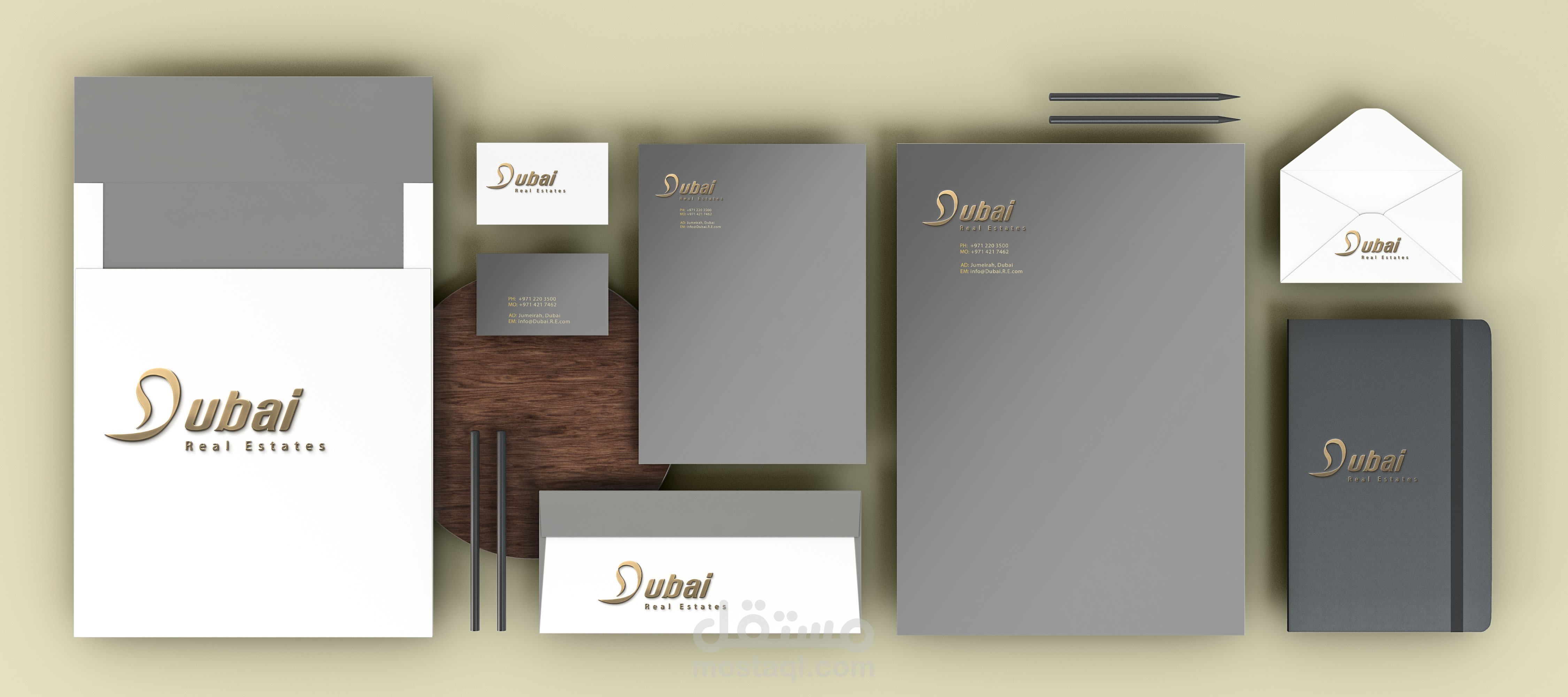 تصميم شعار عقارات, تم دمج اللغة الانجليزية باللغة العربية من خلال حرف D الذي يظهر حرف د بالخط الديواني.
