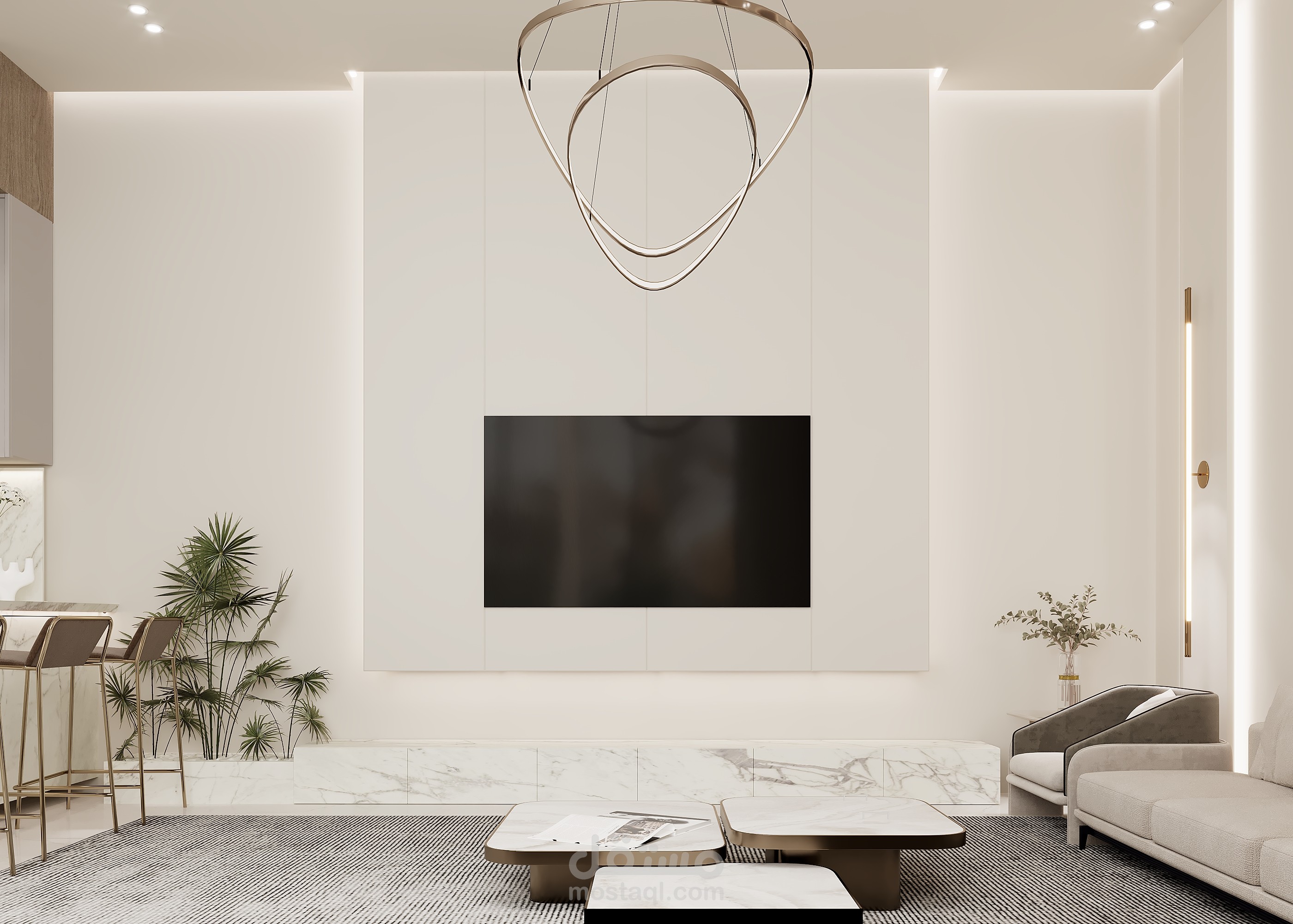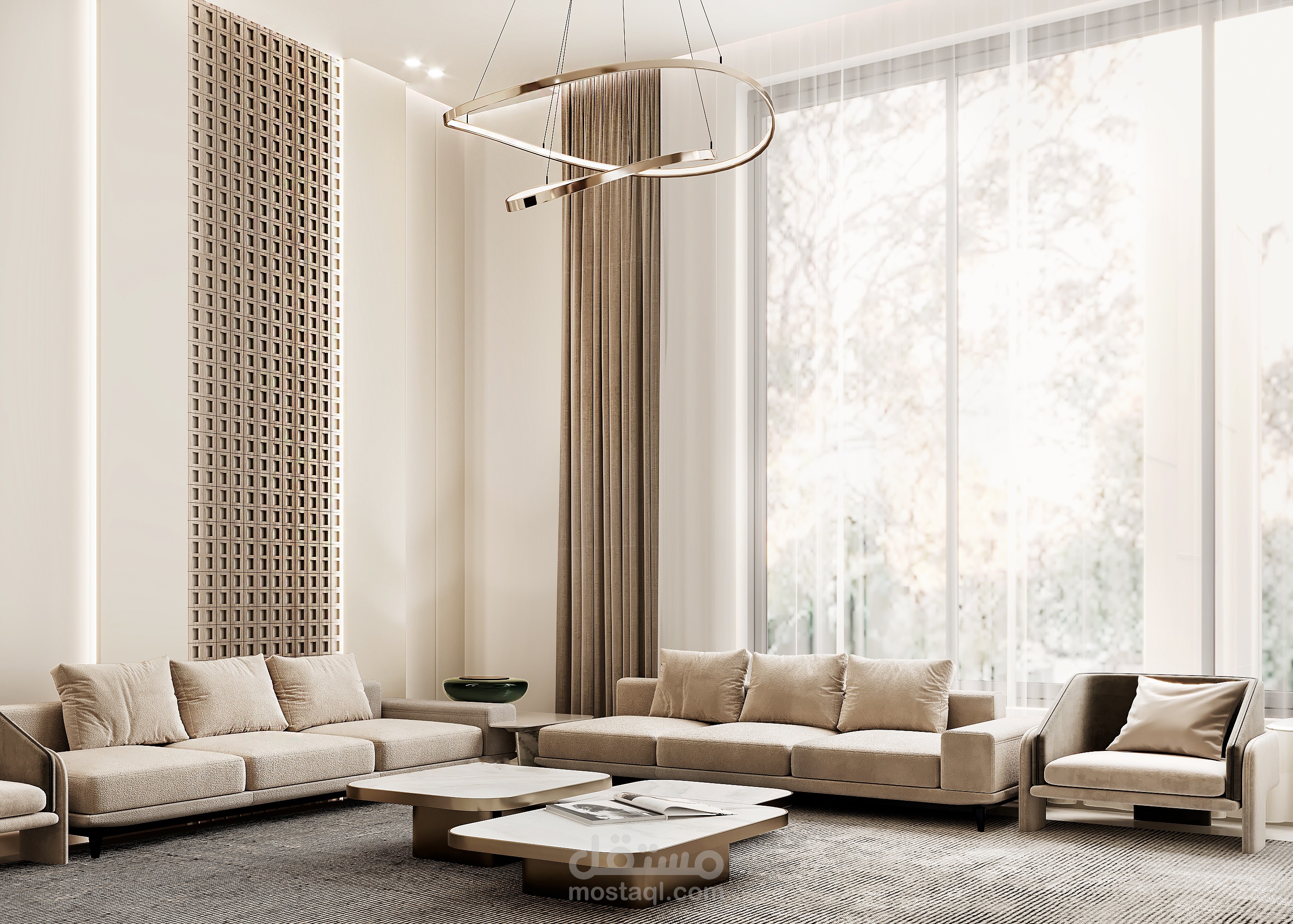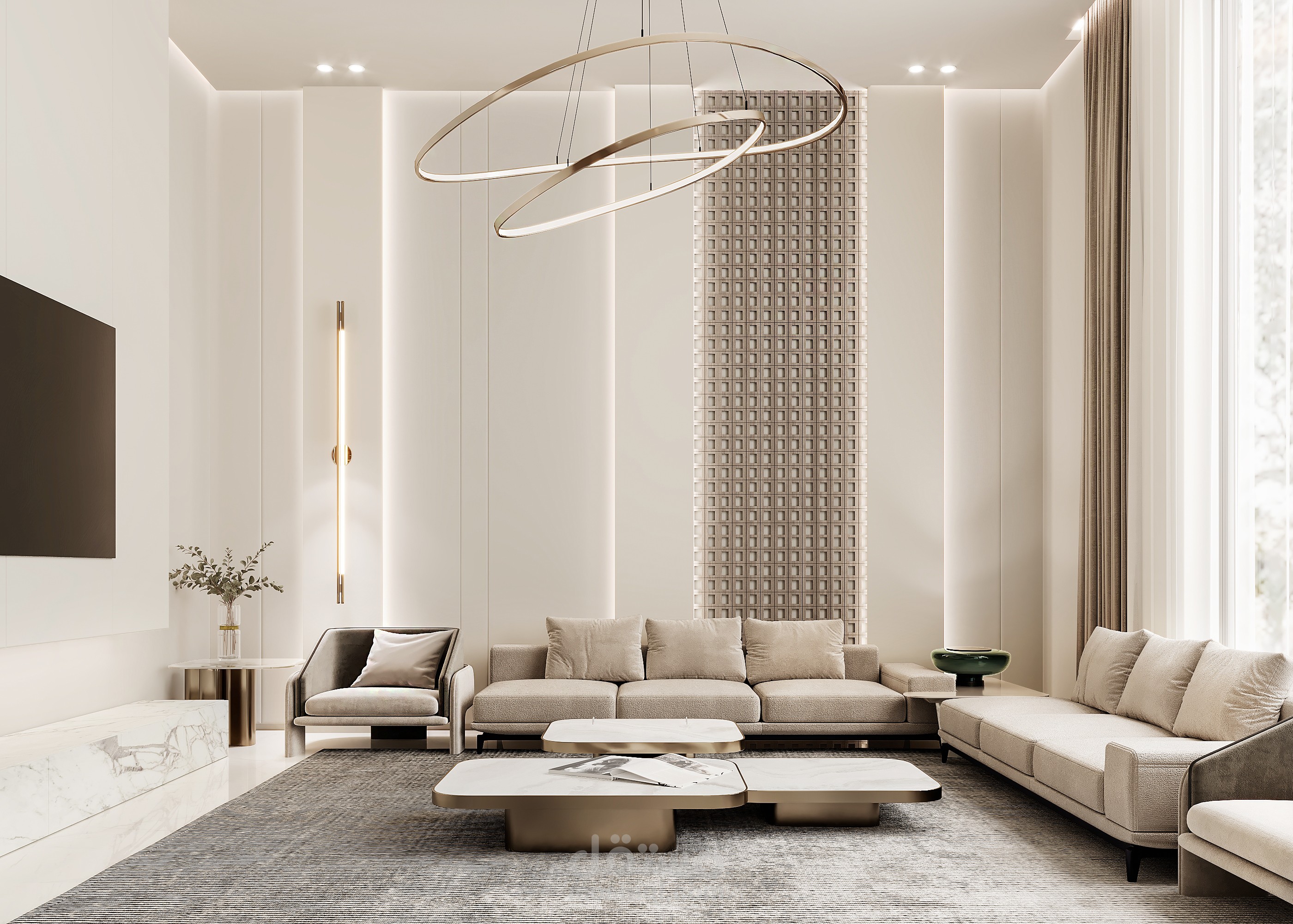 تصميم فراغ معيشة لمنزل بمساحة 250 متر مربع