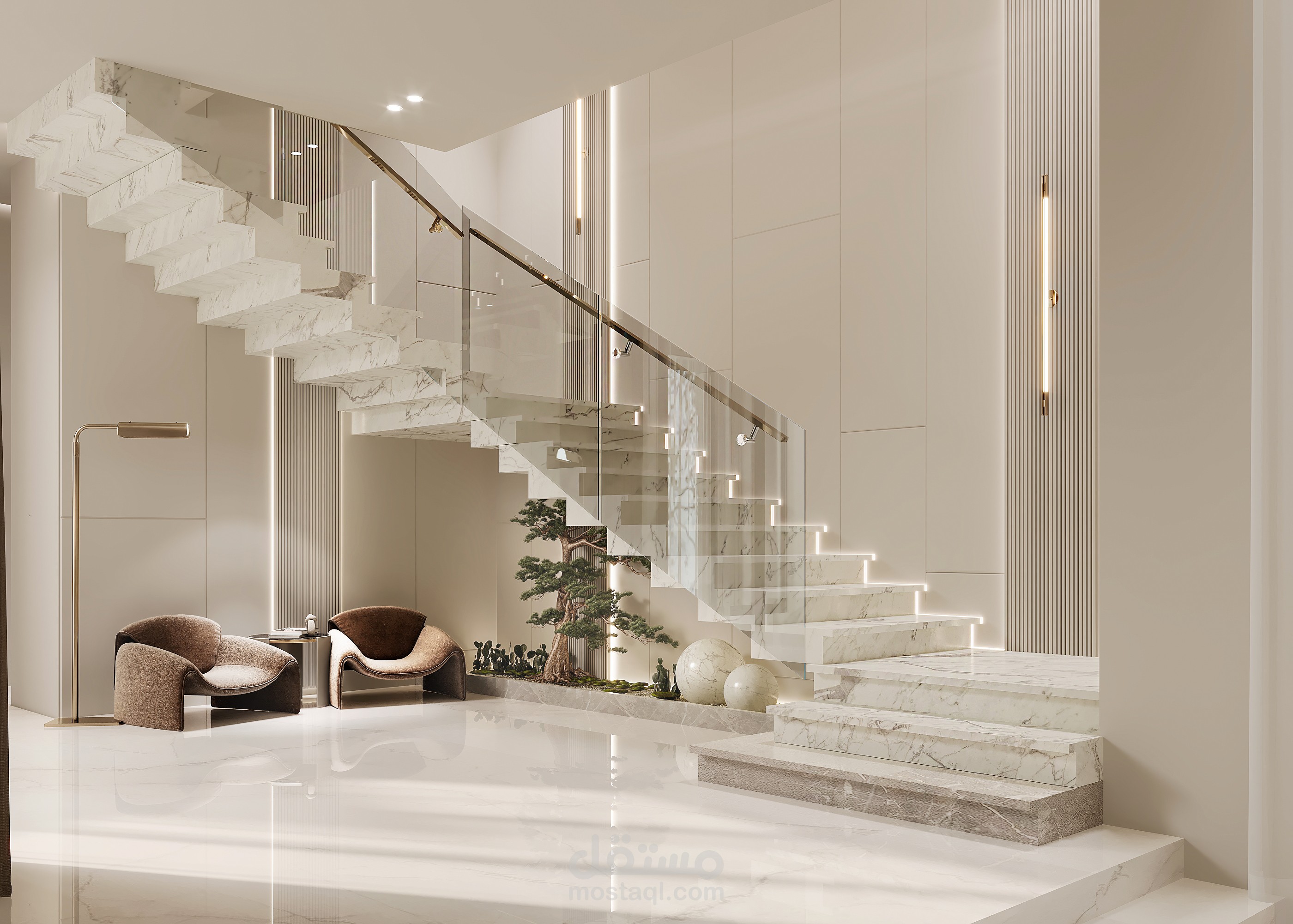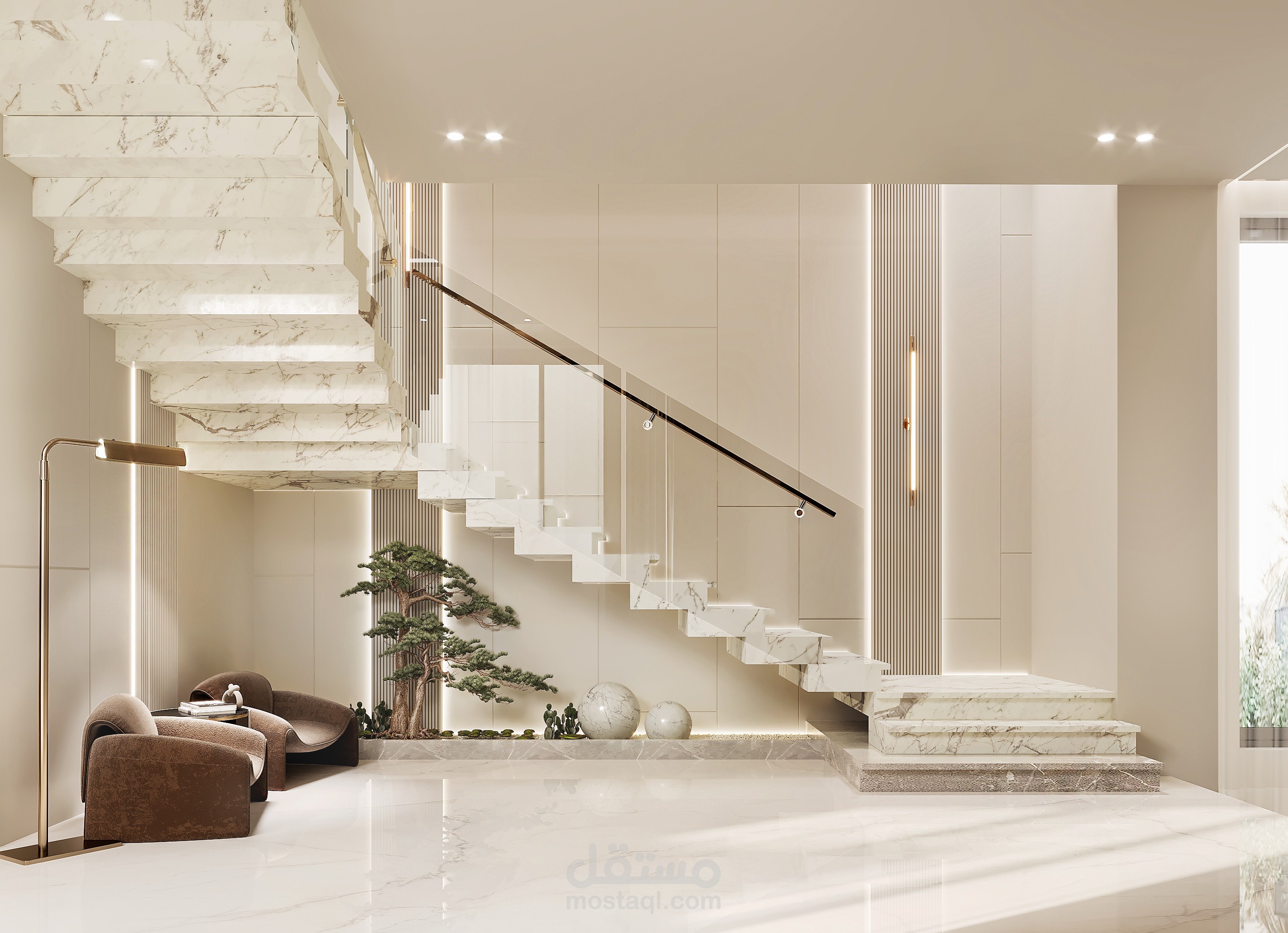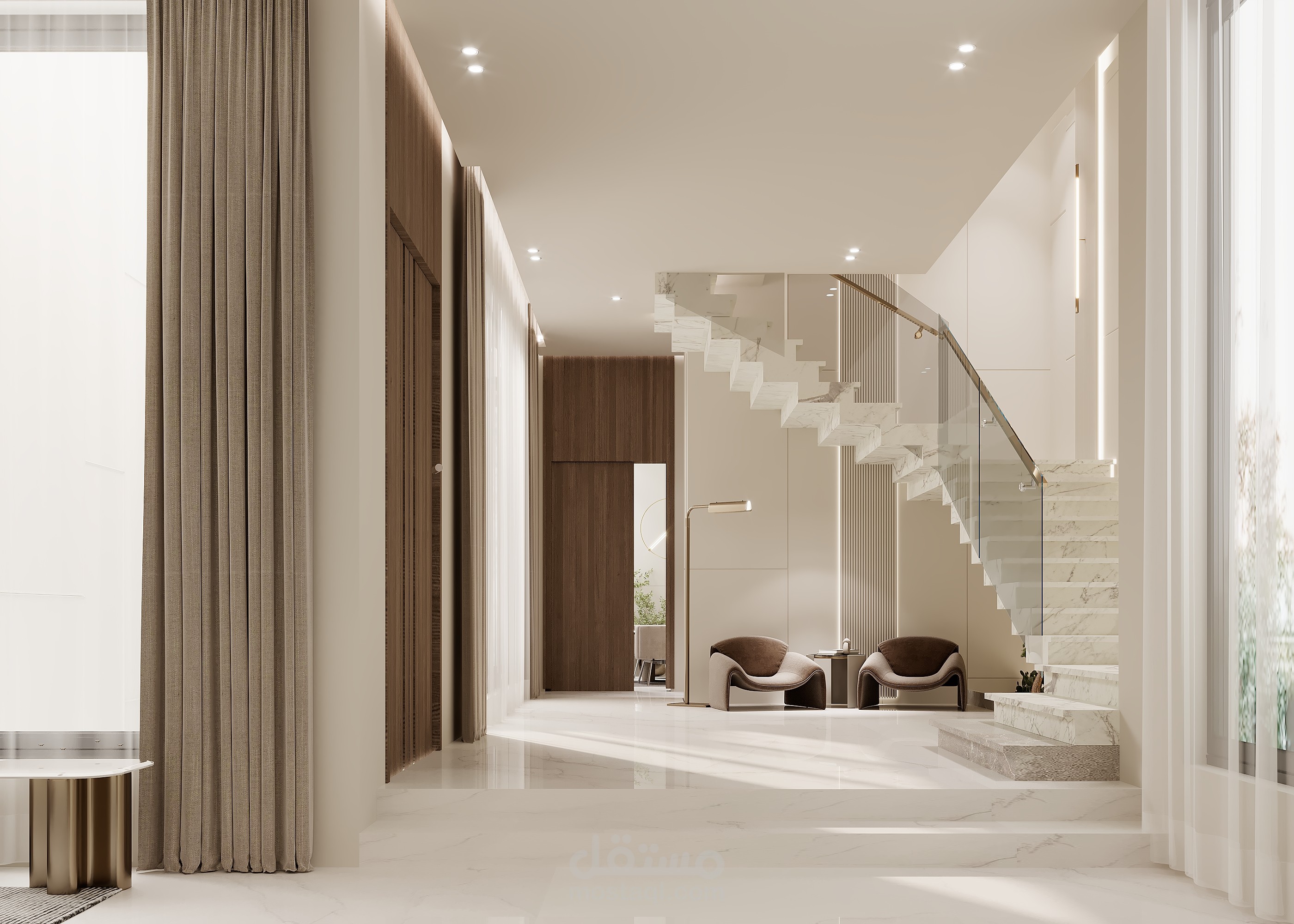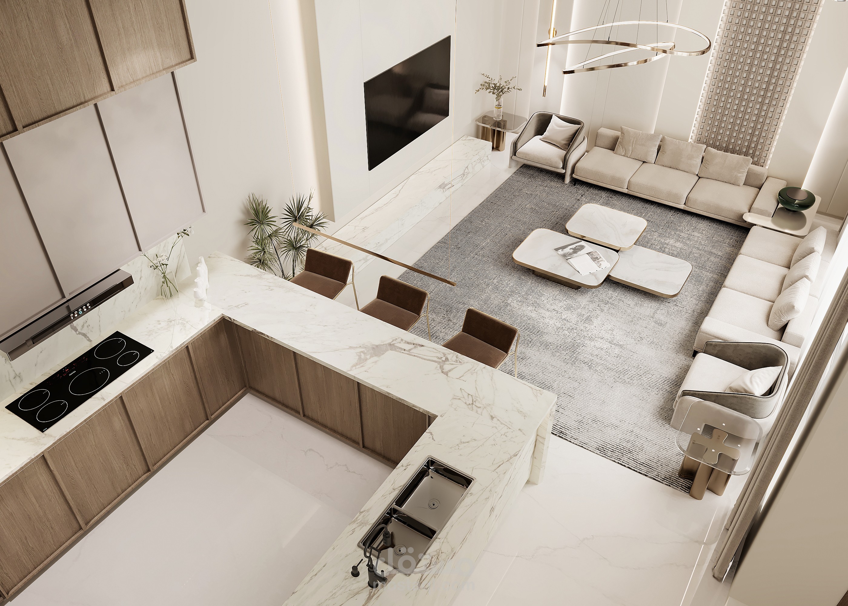تصميم فراغ معيشة لمنزل بمساحة 250 متر مربع
