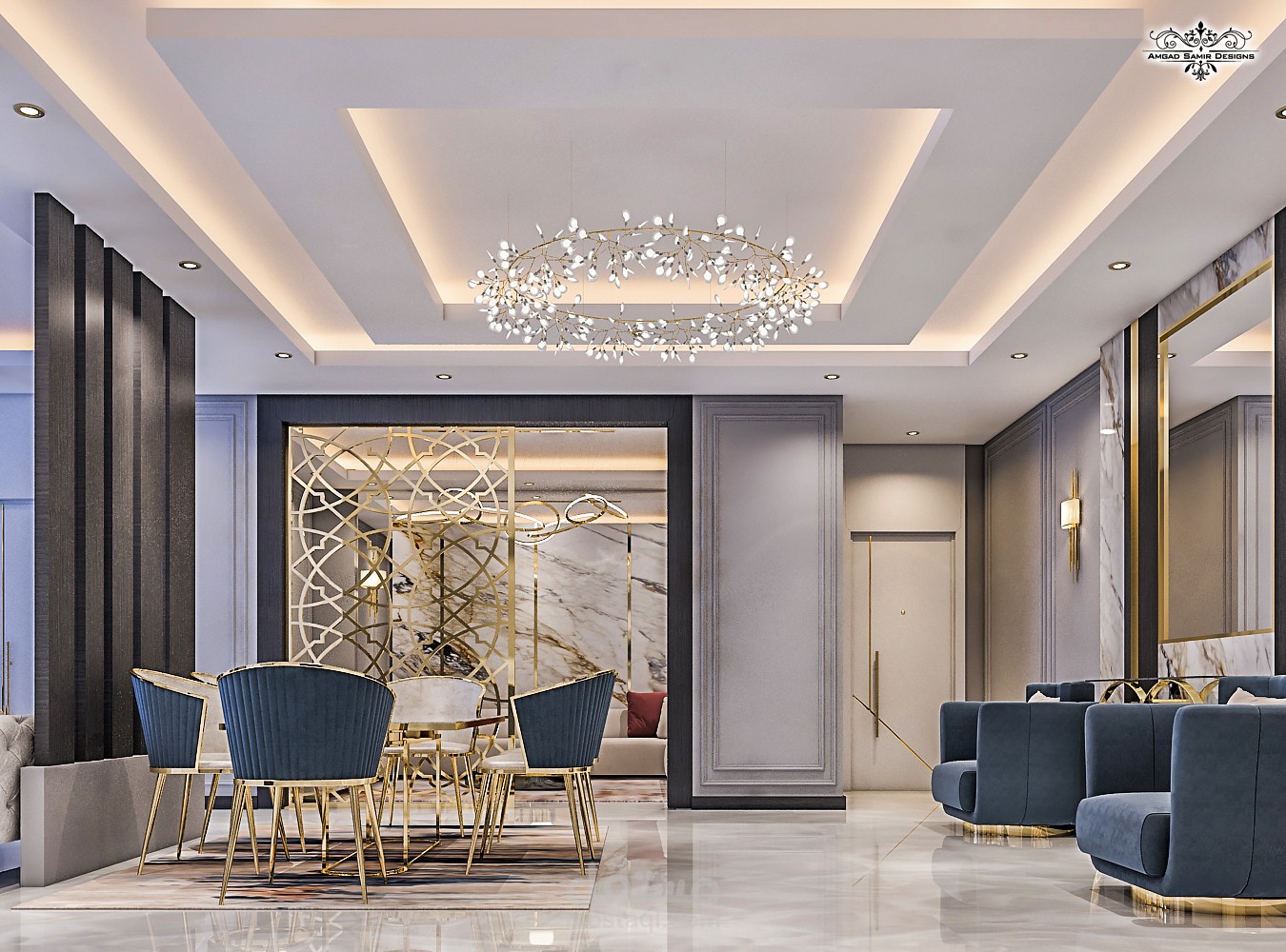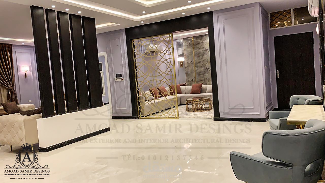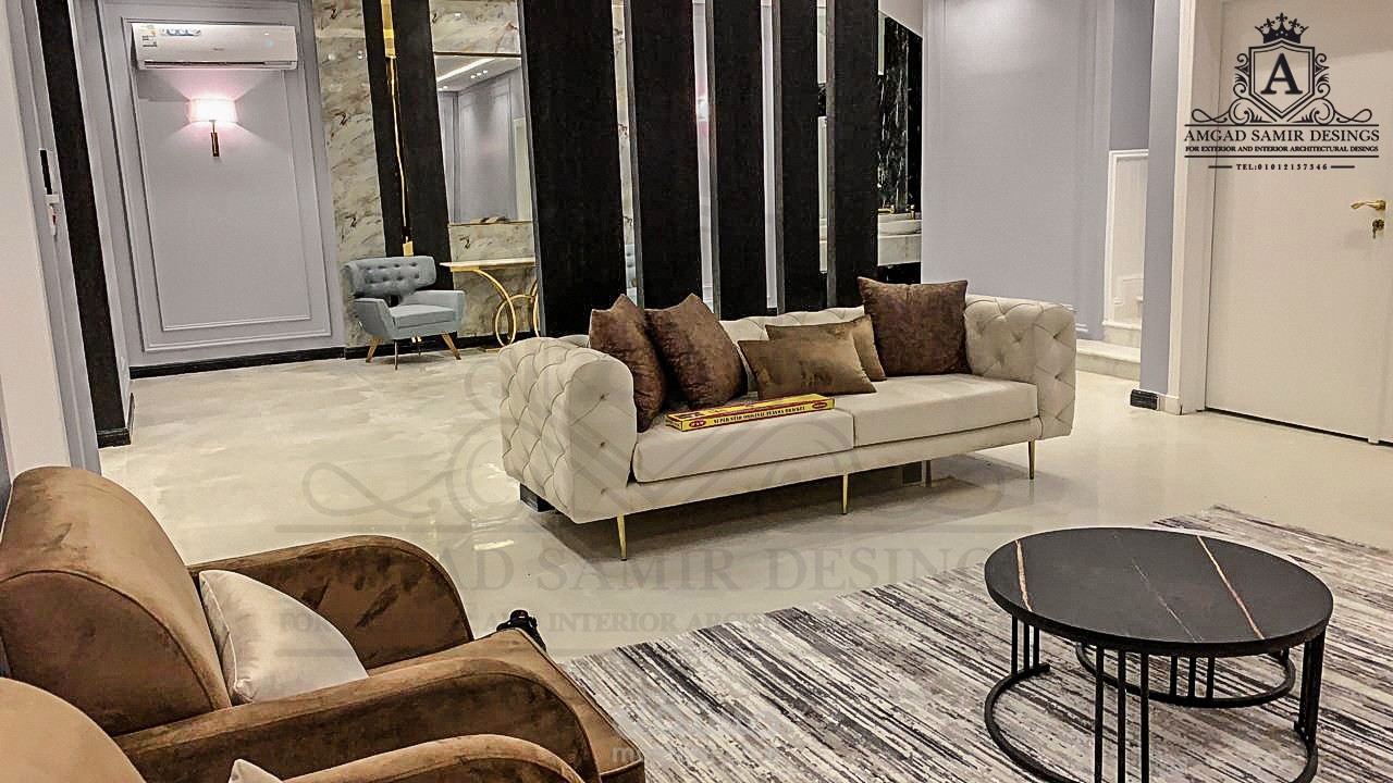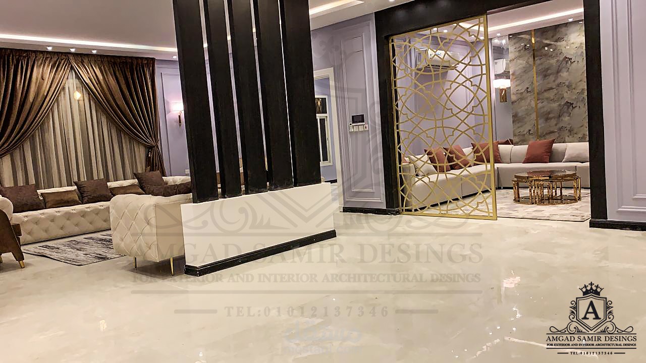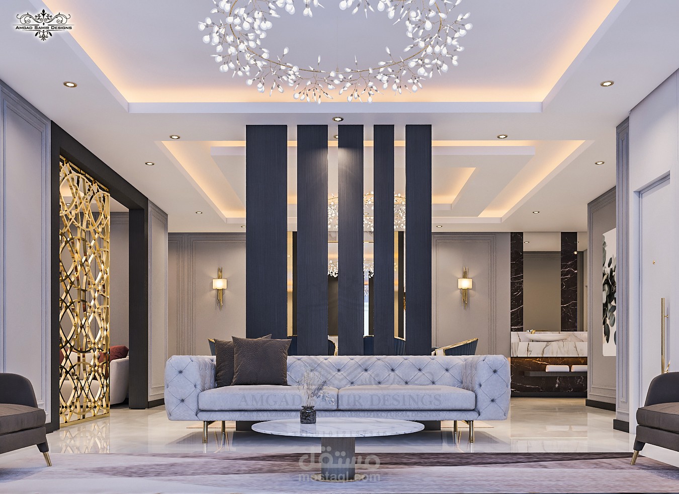 تصميم صالة عائلية بالرياض بطراز النيوكلاسيك المودرن ... صور تنفيذها طبقا لرسومنا التنفيذية وتوصيف الخامات المتوفرة فعليا