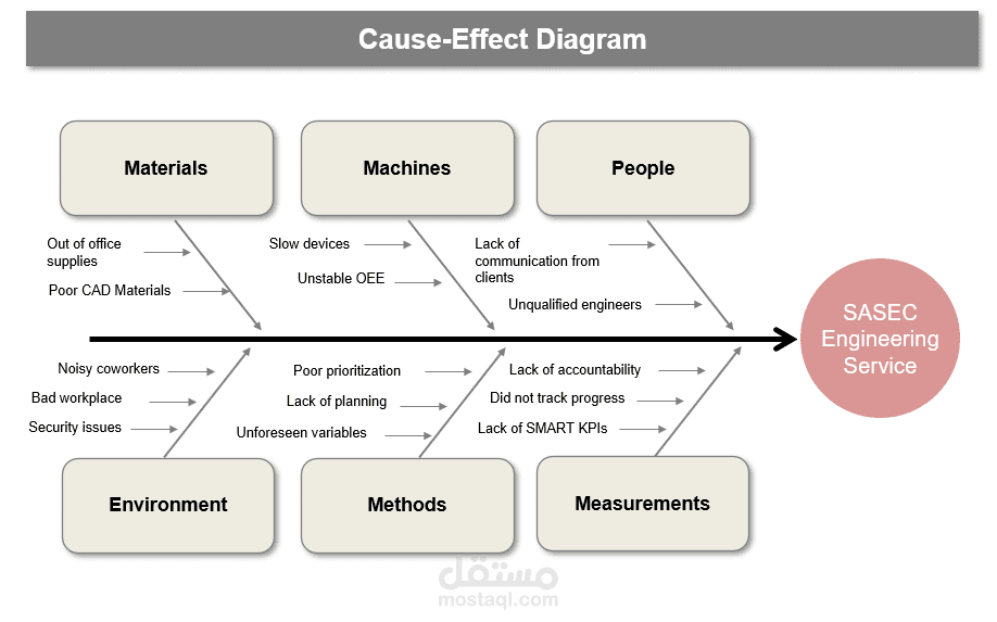 عمل Cause-Effect Diagram لخدمات شركة تعمل في Engineering Consulting