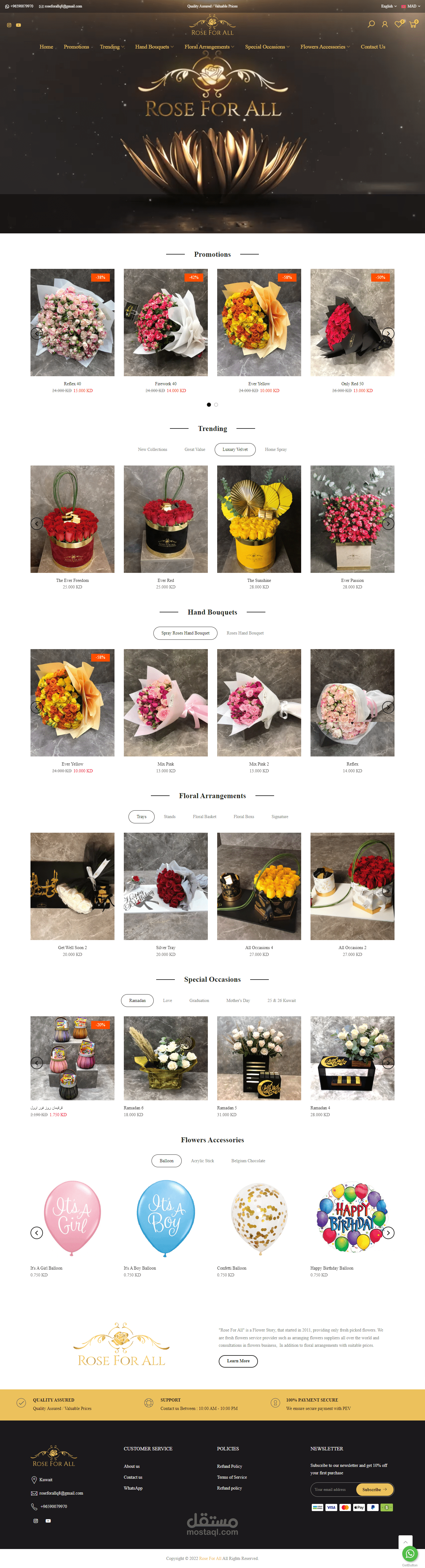 إليكم أحد أفضل المتاجر الانجليزية الاحترافية لعلامة تجارية متخصصة في الورود والهدايا التي صممتها على منصة شوبيفاي Shopify،