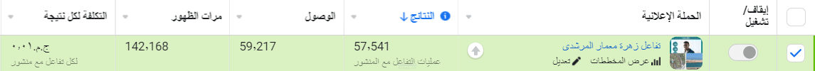 قمت بعمل حملة اعلانية علي الفيسبوك لزيادة التفاعل page engagement حيث حققت نتائج مبهرة كانت تكلفة جلب التفاعل الواحد 0.01 جنيه مصرى و استطعت بفضل الله جلب 57400 الف تفاعل خلال 20 يوم