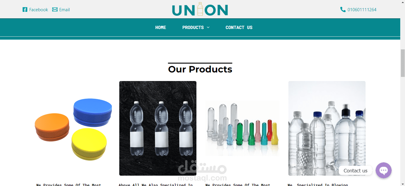 موقع تعريفي لشركه يونيون بلاست و مكان لعرض الخدمات الخاصه بالمصنع