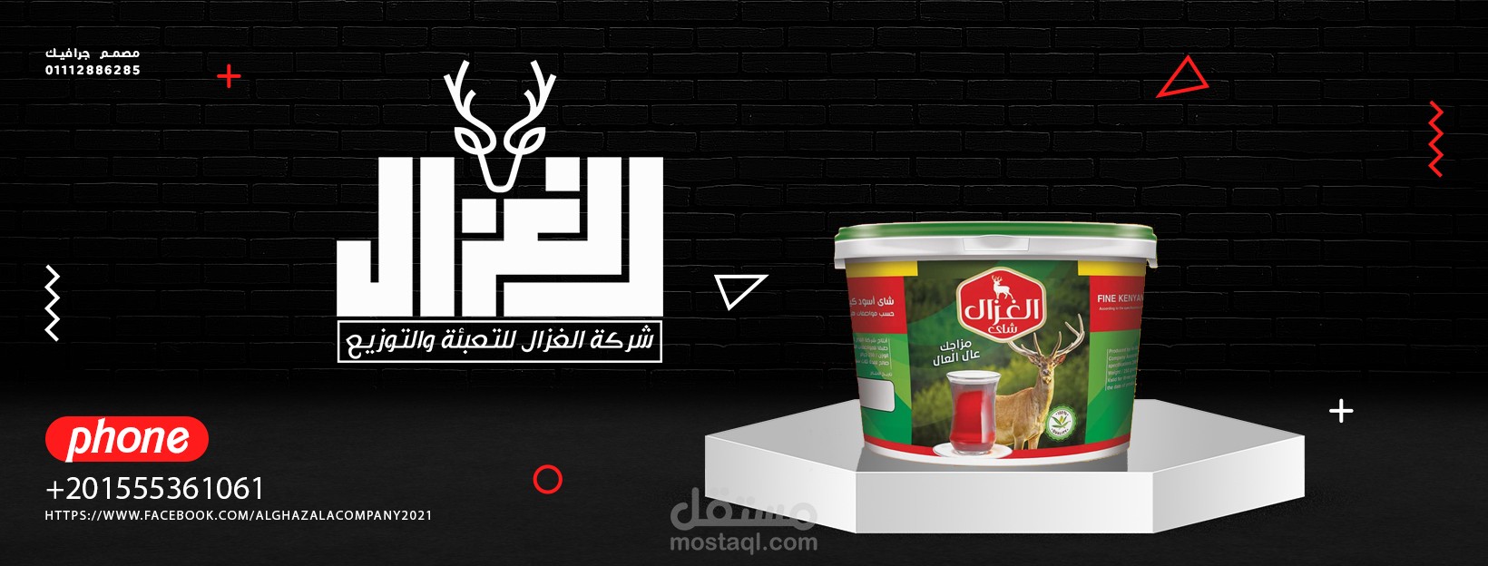 تقاصيل : تصميم شعار وغلاف فيس لشركة الغزال بلخط الكوفي المربع البرمج المستخدمة ادوبي فوتوشوب والستريتور