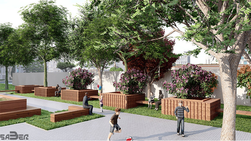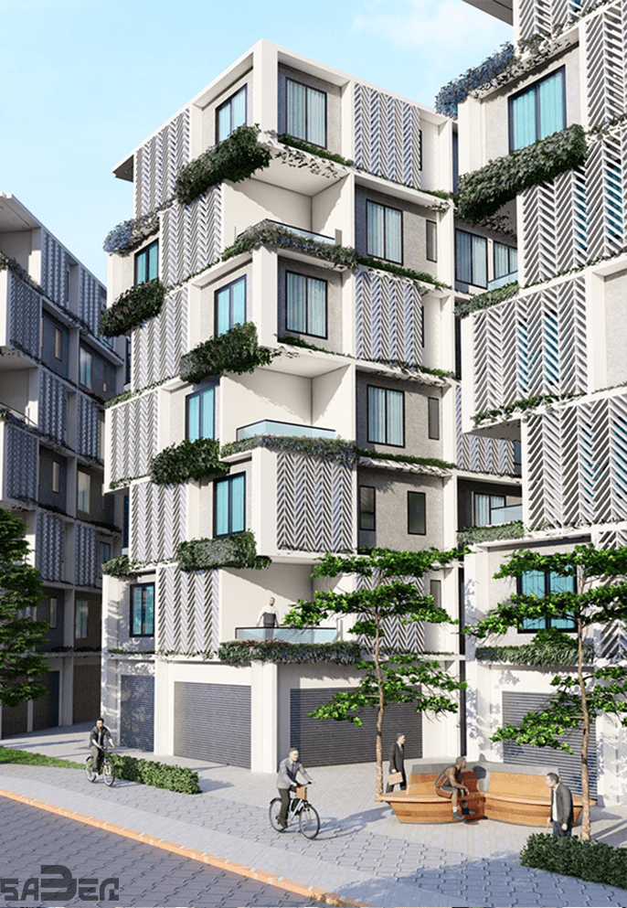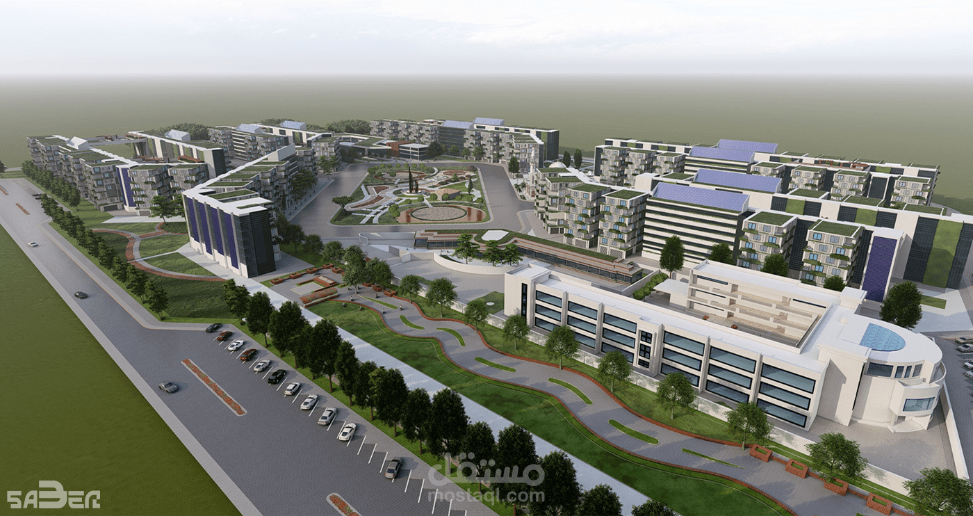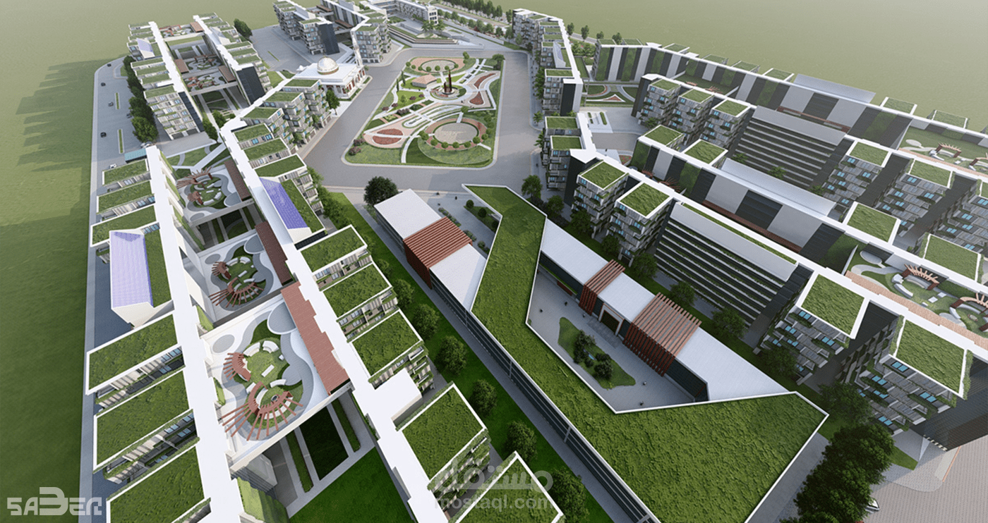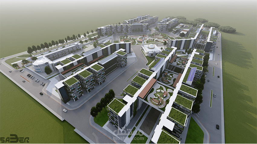 يضم التصميم الاعتبارات البيئية وكذلك اسس و اشتراطات التخطيط القياسية من حيث اشتراطات المباني نفسها واشتراطات امن و سلامة الطرق
