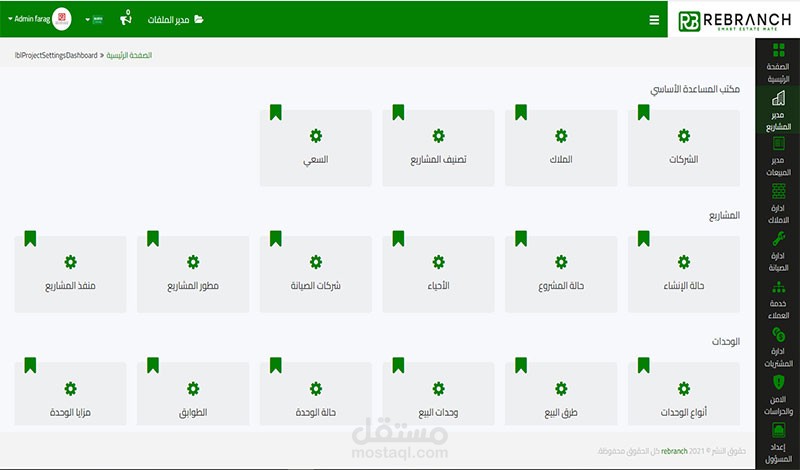 اضافة اعدادات للمشاريع والمباني والوحدات توجد اضافة مزايا كامله للمشاريع وبيانات المشاريع ودمج وفصل الوحدات وشركات الصيانة الخاصة بالمشاريع وغيرها من الاعدادات والمزايا الكثيره