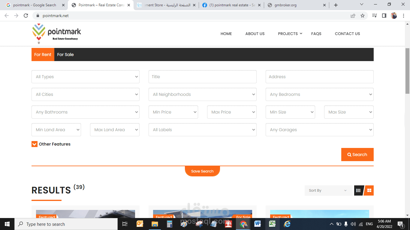 العمل عبارة عن اختيار العميل لنوعية العقار الذى يريد ان بشترية او يستأجره أو يستثمر فيه. يقدر أيضا العميل ان يختار العقار على حسب الماديات الخاصة به