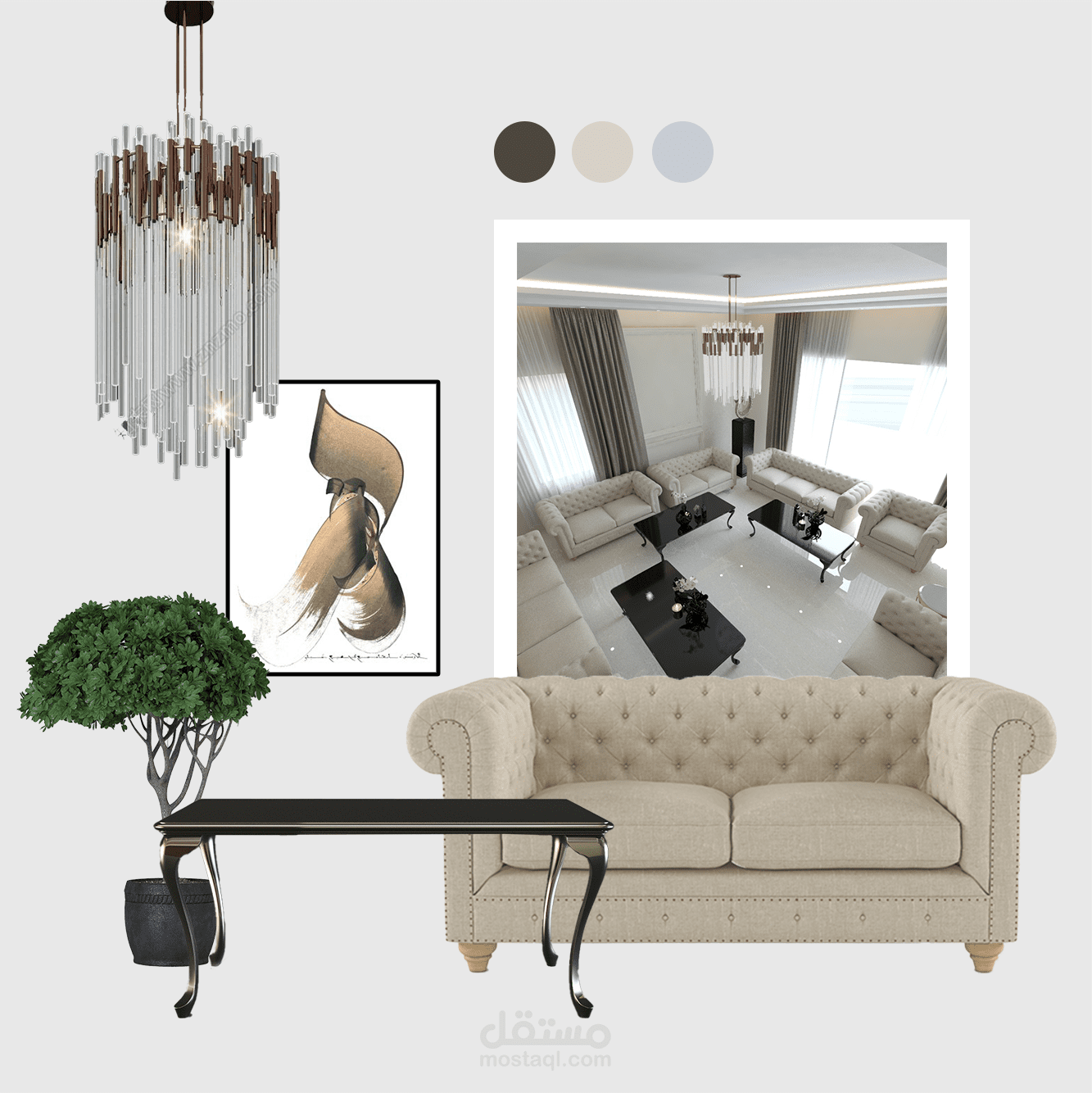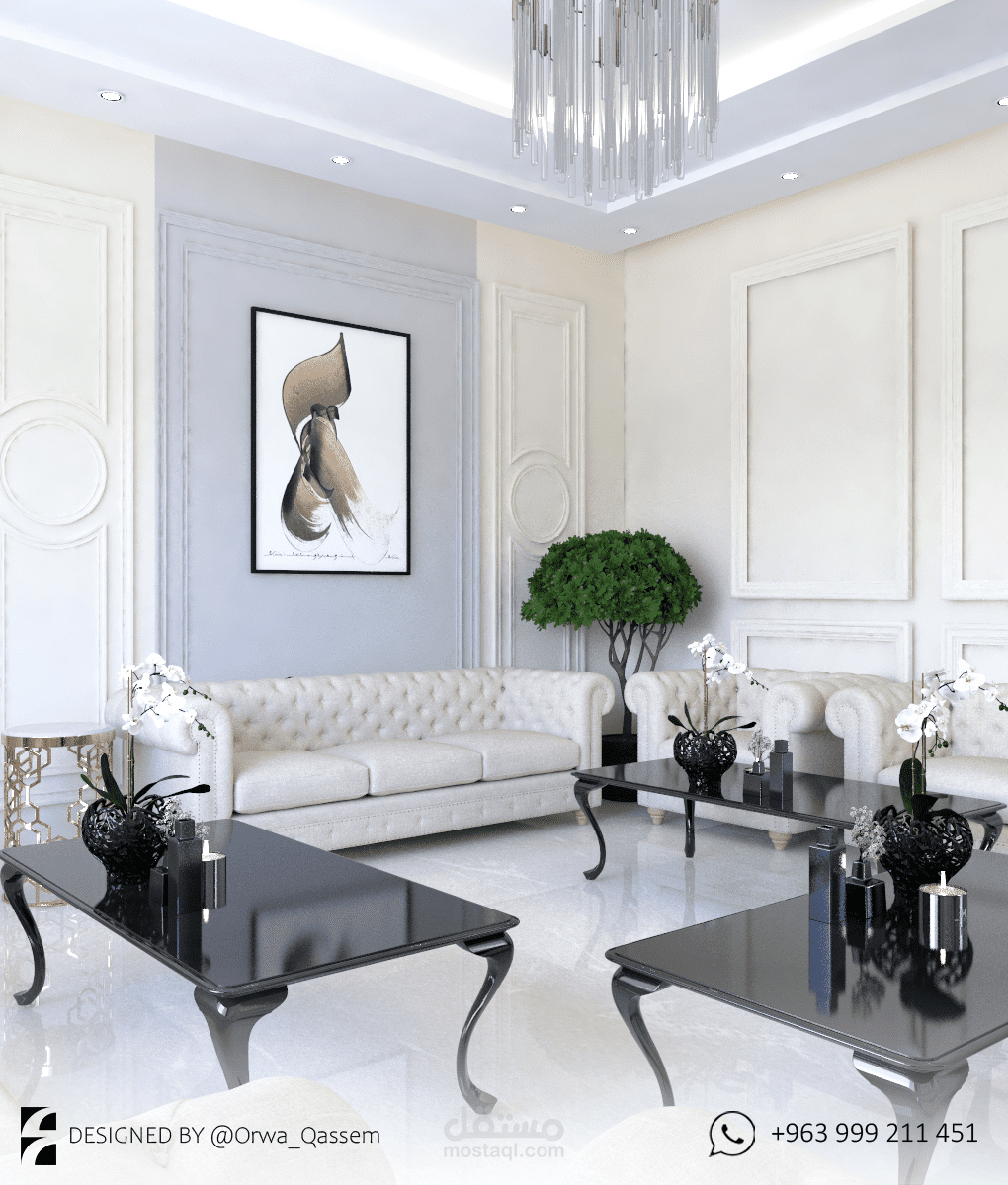 تصميم مجلس رجال بنمط نيو كلاسيك ضمن فيلا في الامارات