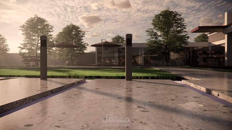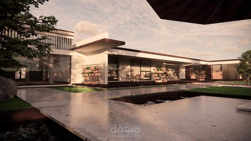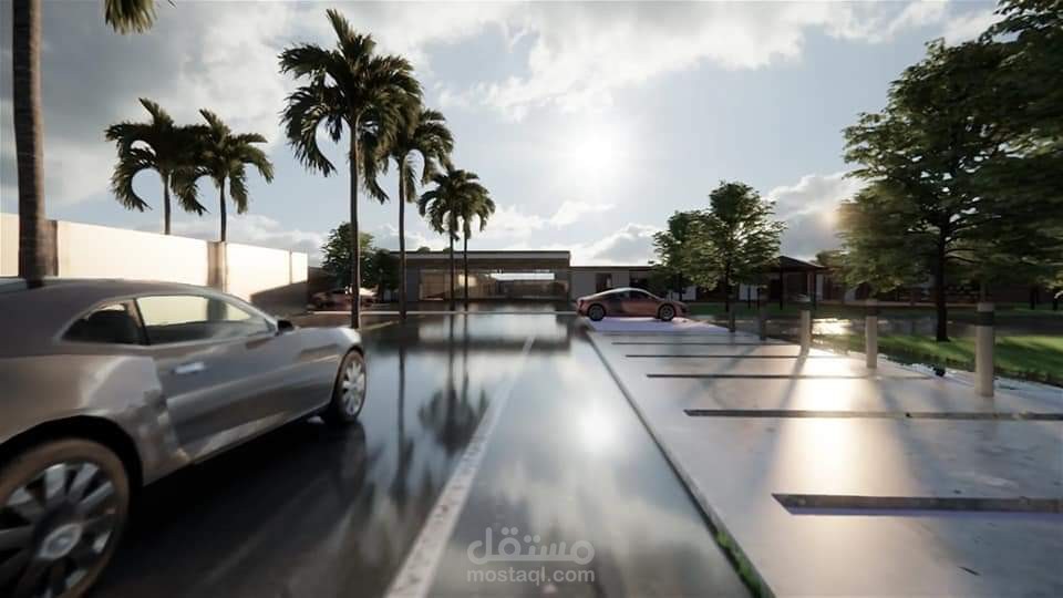 المبني محاط بمسطحات مائية ونوافير لتلطيف الجو..
