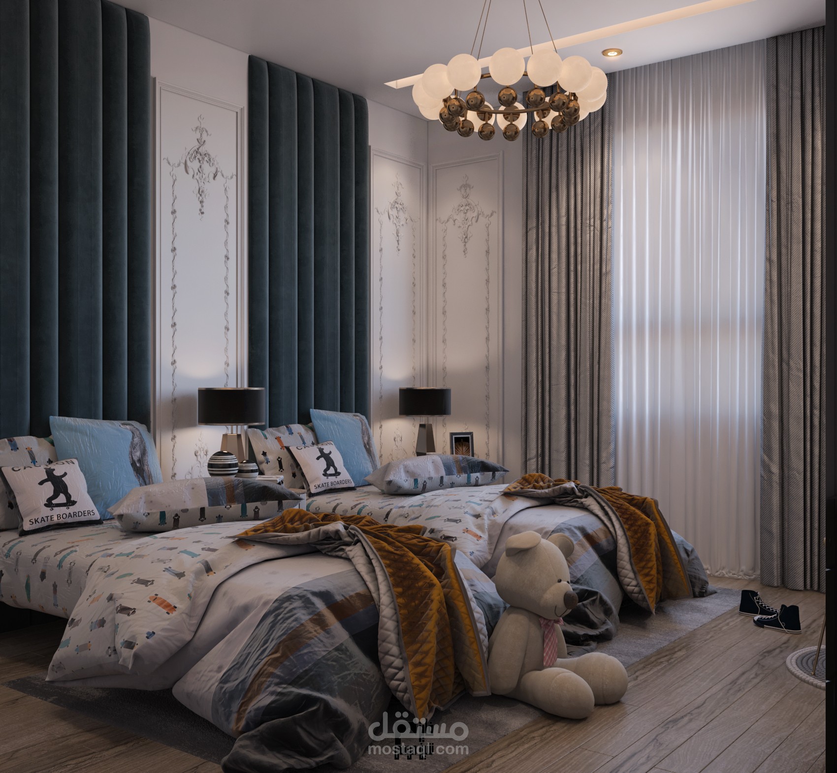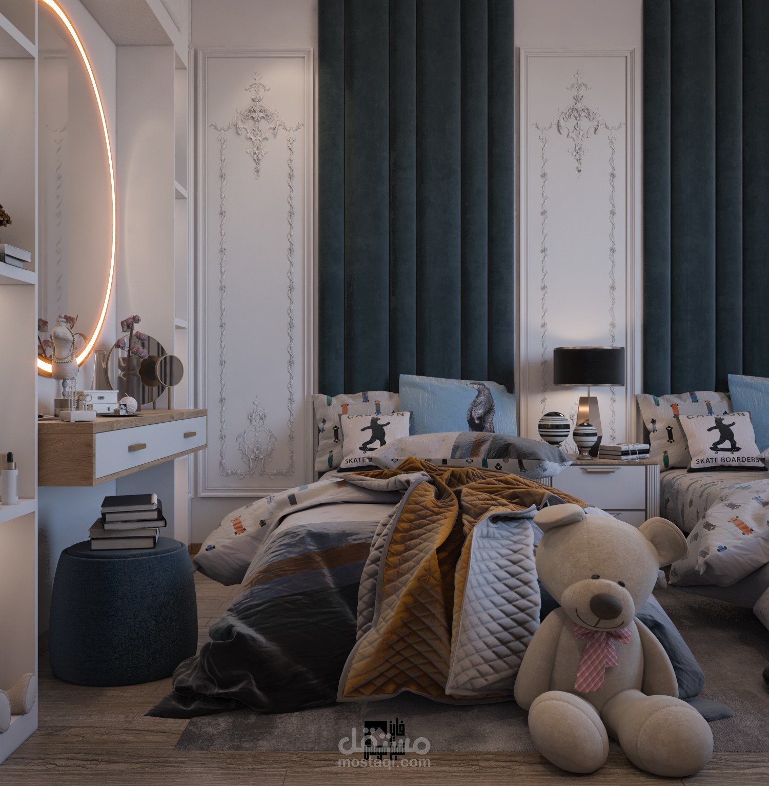 تصميم لفراغ داخلي (غرفة نوم أطفال) في فيلا سكنية فاخرة ..