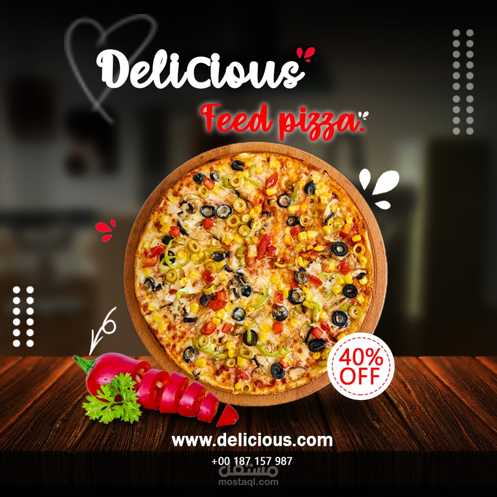 تصميم اعلان سوشيال ميديا لمطعم بيتزا