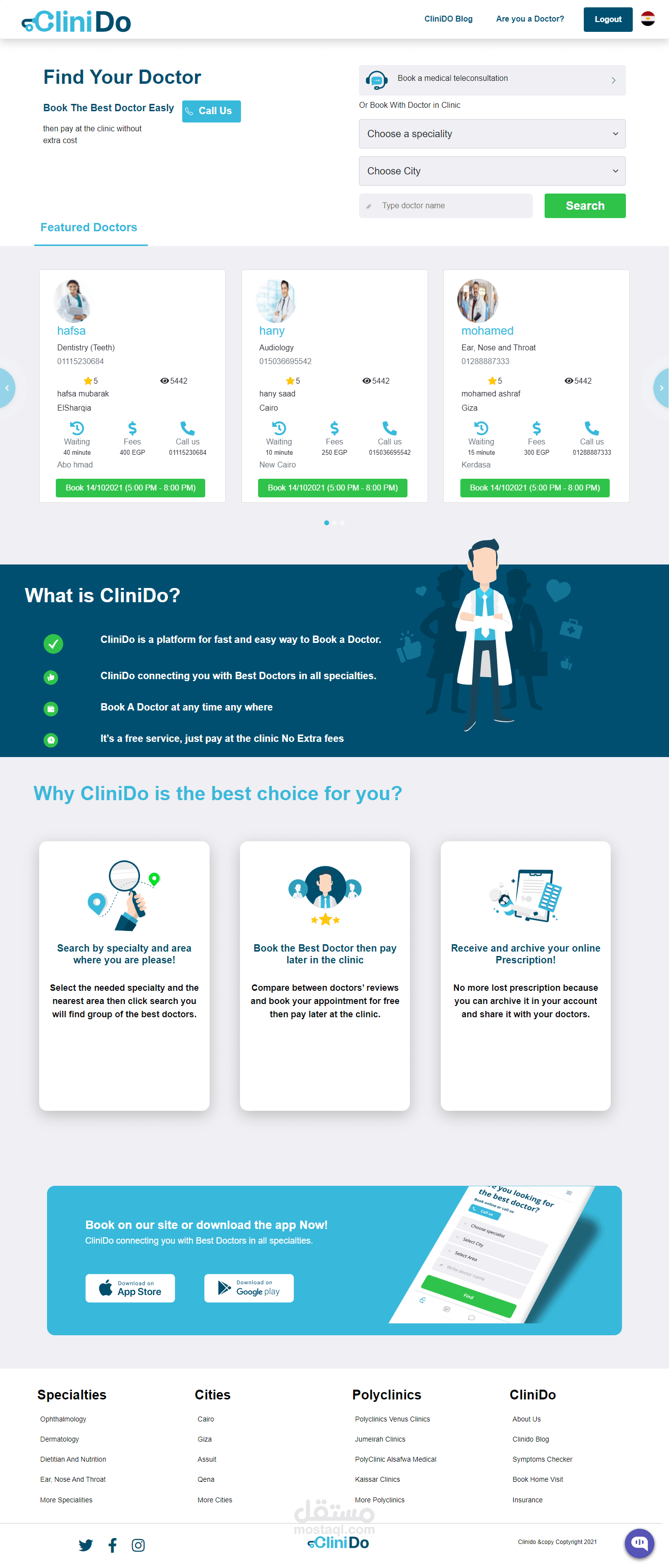 CliniDo is a medical Website App that Allows the user to choose the category, the doctor and the city.