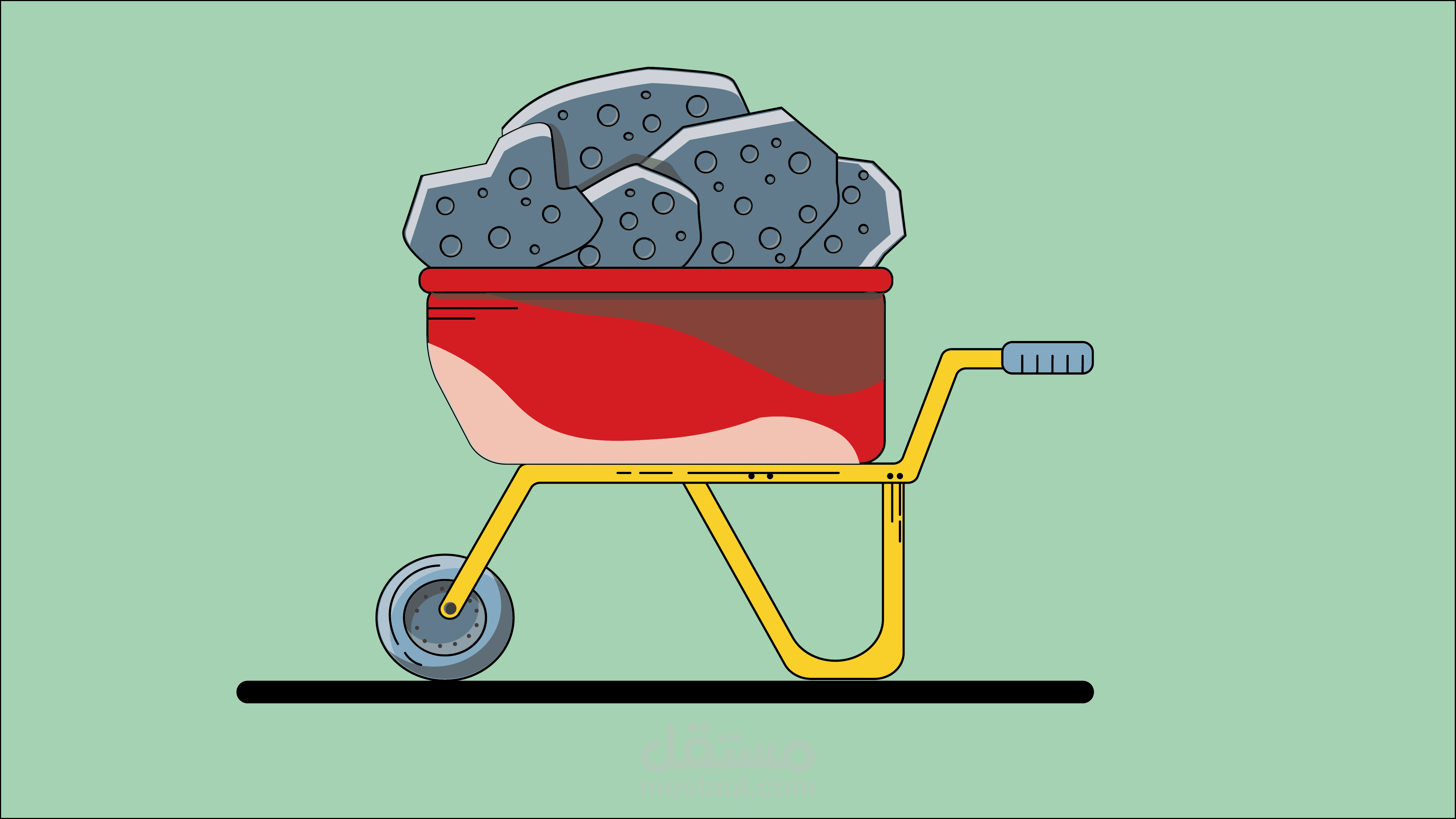 عربة تستخدم فىى نقل الاحجار و لاكن بالوان مبهجرة و جميلة و الظل و النور و باستخدام برنامج illustrator و ابراز التفاصيل.